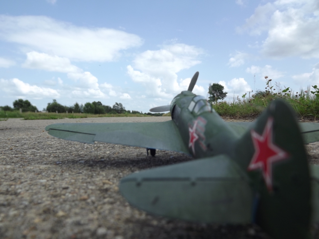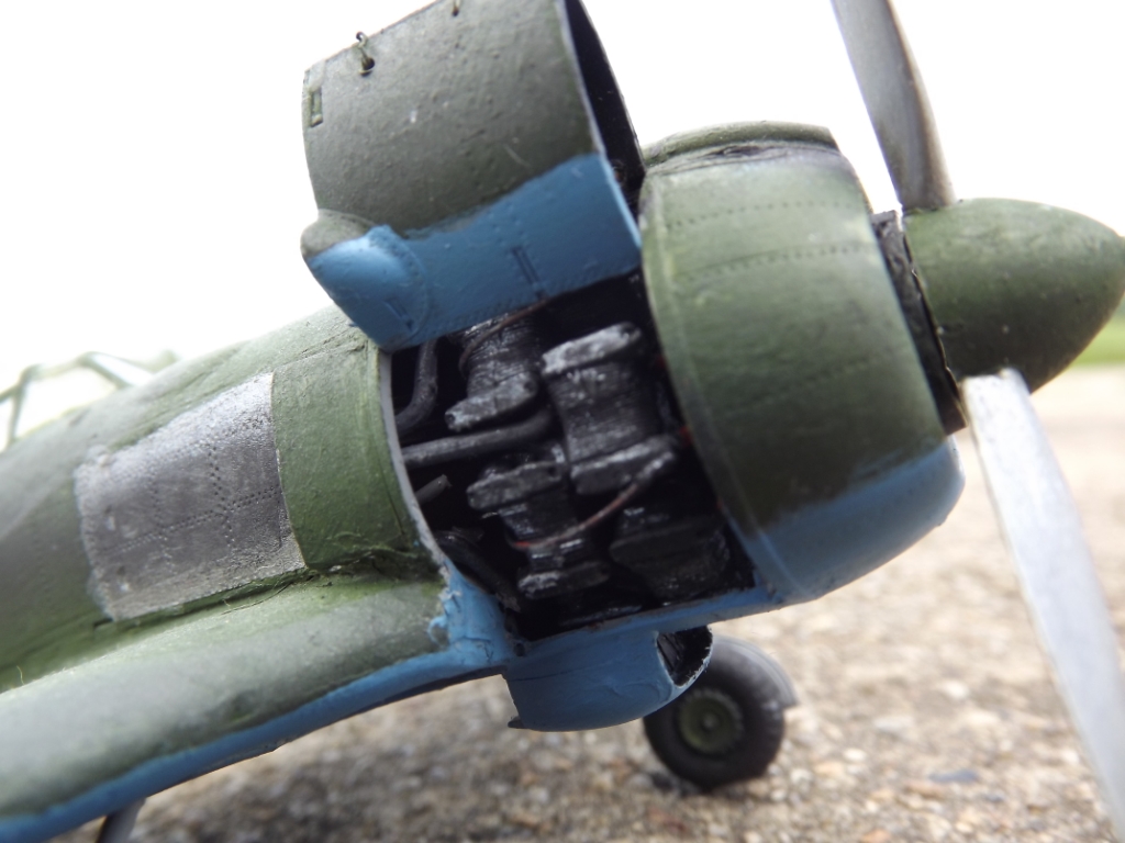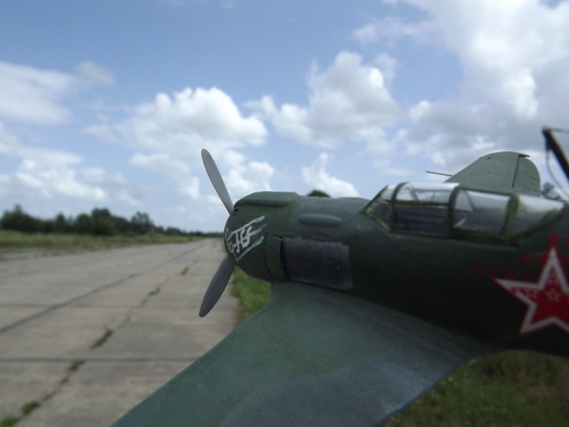 В начале была мысль и эта мысль была....сделать подвижными все сединения в данном аппарате,но...этой мечте было не суждено сбыться..слишком мелкий масштаб, даже если бы протянул тросы управления рулями высоты,закрылками и поворотным рулем в кабину к педалям и штурвалу то продемонстрировать как все это работает я не смог бы( пальцы слишком большие(((( также была мысль сделать винт вращающимся,но после примерки моторчика от радиоуправляемой машинки к двигательному отсеку,также отказался от этой затеи-не хватало места для него( поход по магазинам радиотехники тоже не увенчался успехом-нет у них в продаже моторчиков от виброзвонков( чтоб как нибудь "выпендриться")))сделал подсветку кабины изнутри( поставил светодиод под приборную доску и подключил его к двум трехвольтовым батарейкам) капот также решил сделать открывающимся,для этого пришлось сделать движок (для очень тонкой работы у меня пока терпения не хватает),конечно до уровня Марата Назмеева мне еще как до Луны пешком,сделал просто,провел к каждой камере сгорания по одному "проводку" и "закоптил" его. также было решено сделать пулевые отверстия в хвостовых плоскостях (по моему вышло не очень)(((( впервые для себя применил метод "сухой кисти" на фото это не сильно заметно,но в жизни сам самолет выглядит выгоревшим на солнце. после применения "сухой кисти" столкнулся с вопросом состаривания декалей... и в решении этого вопроса спасибо PHANTOMу1976,который дал пару дельных советов,но после общения с дедом,который кой чего знал по те порядки,решил их не старить,как сказал он по этому поводу:"самолет красивым может и не быть,но звезды красными быть обязаны")
