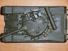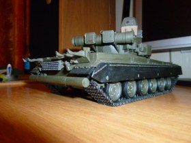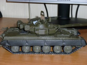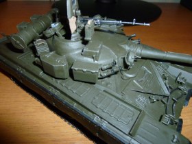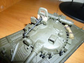 Здравствуйте, Каропчане. Наконец-то у меня хватило духу выложить свою первую модель. Танк собирал из коробки, с небольшими доработками: буксировочный трос, волноотражательный щиток, пулеметная лента на "Утесе", электропроводка на башне, противопыльный щиток, антенна, крепежи "зипов" и "туч", сверток брезента, триплексы из DVD. Красил кисточкой, краска: 50 % "защитный" + 50% "темно-коричневый", немного засеребрил гусеницы и корпус в тех местах, где чаще всего вытирается краска. Огромное спасибо всем, кто собирал эту модель, так как фотоматериал и комментарии очень помогли в работе.