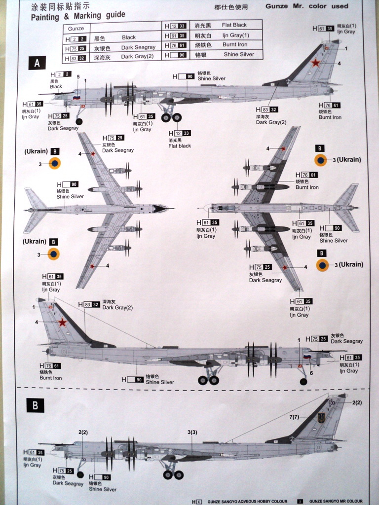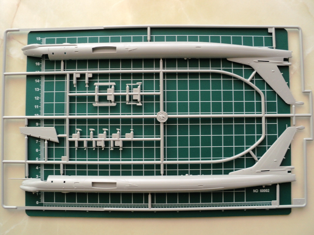 Доброго времени уважаемые коллеги! Представляю на Ваше обозрение Кит от trumpetera легендарного стратега всем извесного Ту-95мс. Набор понравился по качеству в каропке из жесткого картона, шесть литников один из них с остеклением, упакованы в отдельные пакетики. Декаль на два варианта Российской и Украинской ВВС. Две инструкции первая по сборке вторая по окраске, последняя выполнена в цвете. Пластик на вид и ощупь приятен, детали без облоя и утяжен. Попробовал так сказать его на зуб, то-есть порошелся по литнику инструментом обрабатывается хорошо. Хотя и хрупкий. Расшивка внутренняя, только на задней части мотогондол двигателей внешняя. Стыкуемость на первый взгляд должна быть неплохой (операция покажет). Спасибо за внимание приятного просмотра.