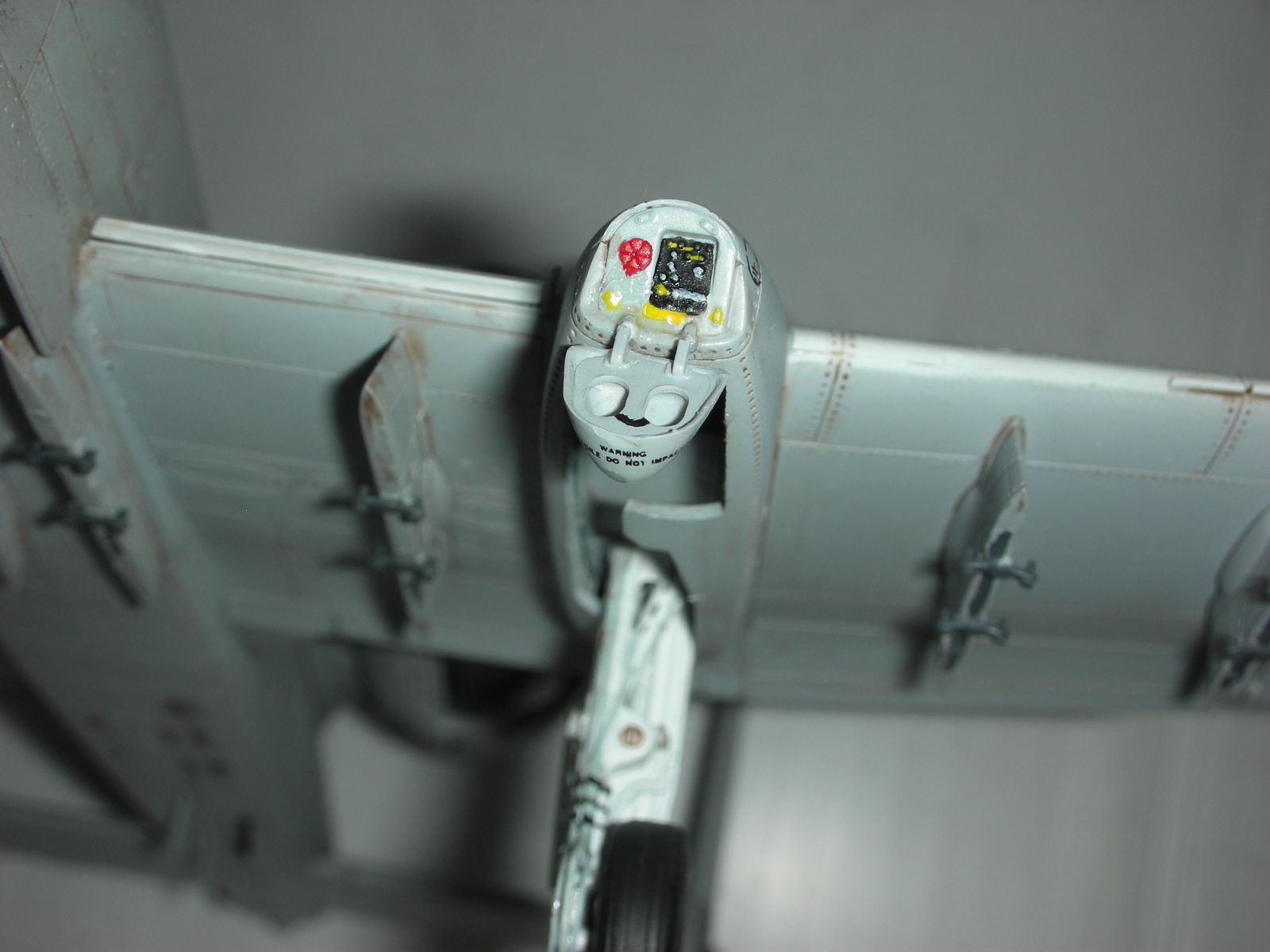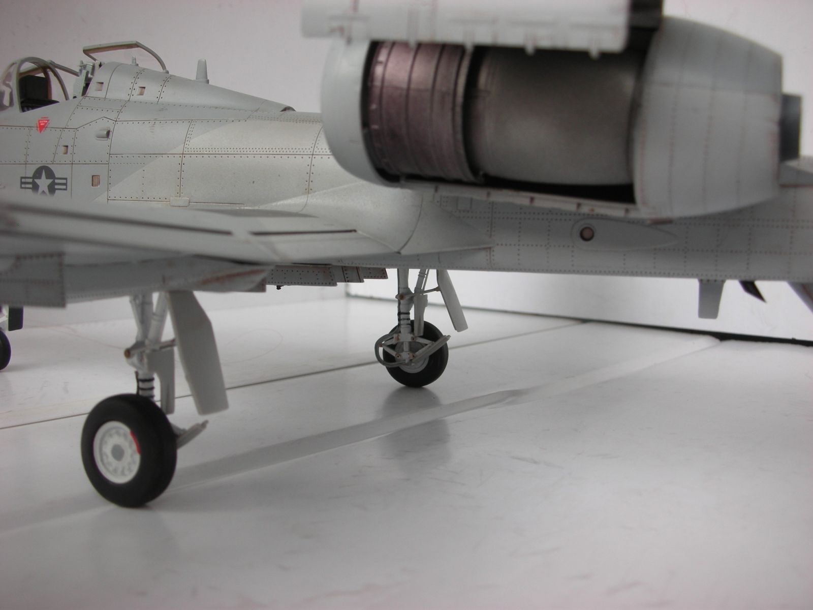 Александр, толково получился ваш "удар молнии". Грамотно. Есть небольшие помарки-это мелочь)) Смывки на дисках шасси не хватает. И штоки г/цилиндров на стойках имитируйте (хром-силвером). И есть случаи, когда макросъемка неуместна-многое бросается в глаза-))).