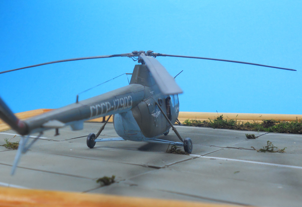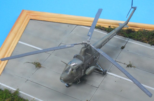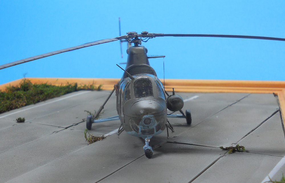 На халяву доставшийся мне Ми-1М, сделал по быстрому и особо не морочился. Отливка досталась наипакостная: половинки фюзеля жили своей жизнью каждая и упорно не стыковальсь, ровно как и остекление, которое сначало клеилось с фюзелем, затем оптесывалось надфилем, длалее шлифовка и полировка, лопасти были перешиты и нарощены в местах недоливов, основные стойки шасси пороги и подкосы костыля сварганены из спинального катетора, классная штука к стати, здесь ее потенциал полностью не раскрыт;) ну и клепка накатанная своей приспособой. Краска-акан, лак от ревэлл, смывка фэйри+ акрил, а вот с осветлением явно перебор, белая краска длобавленная в лак стала ярче после высыхания. Вариант окраски так же выбрал по приколу. В общем сильно не бейте:)