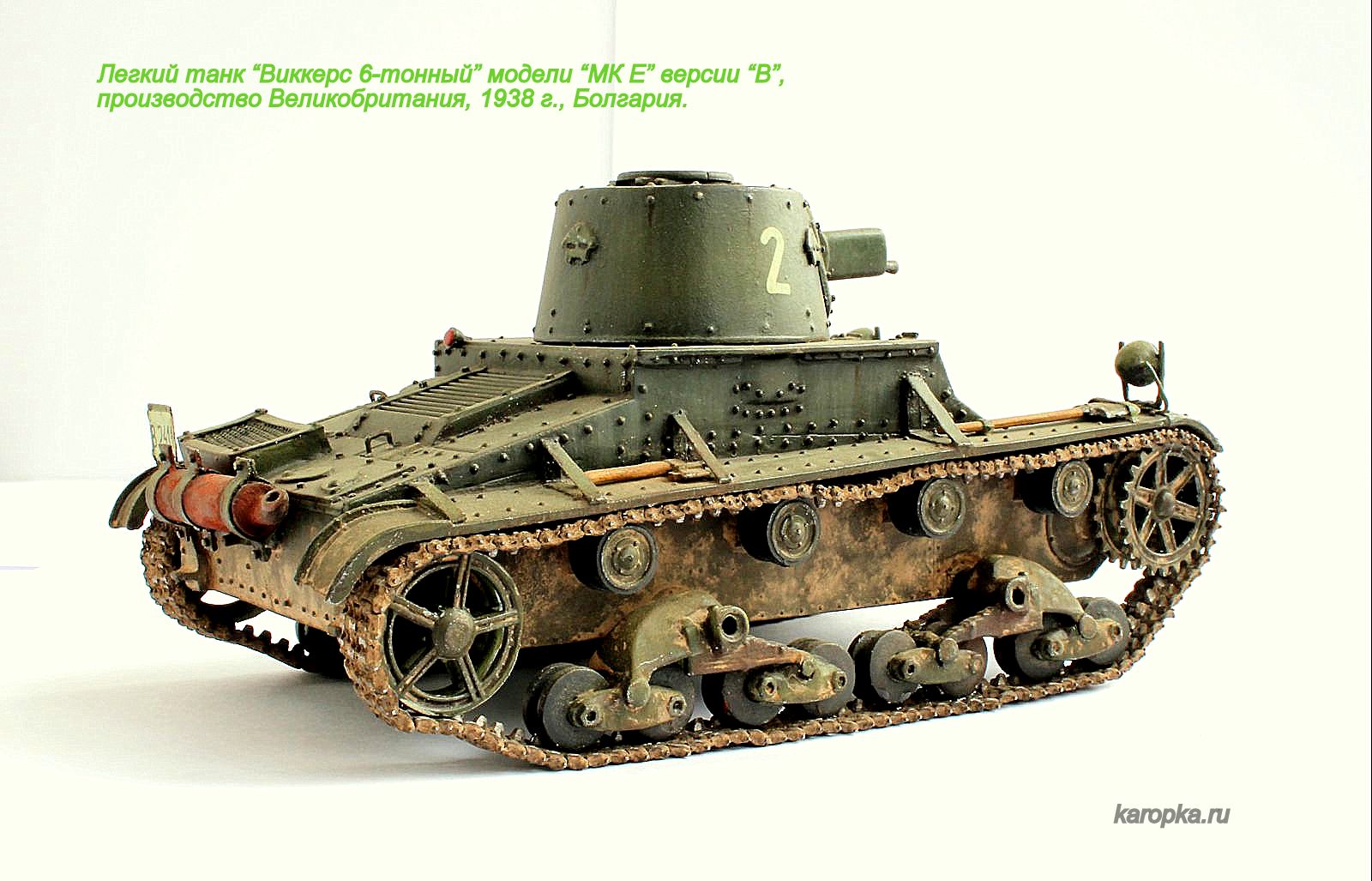Доброго времени суток собратья-моделисты! Представляю Вам очередную свою модель - английский легкий танк "Виккерс" модели МК Е версии "В" (Виккерс 6-ти тонный) от польской фирмы "Мираж Хобби". Подробная история создания самого танка, его ТТХ и процесс создания модели изложен в моей "сказке": http://karopka.ru/forum/forum188/topic8826/.