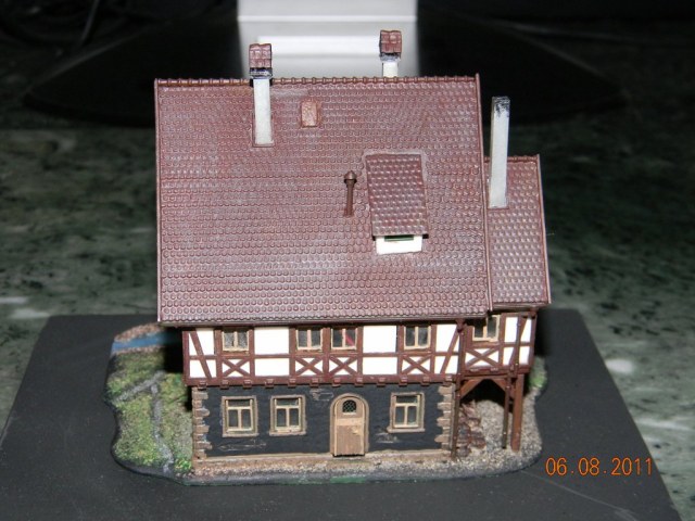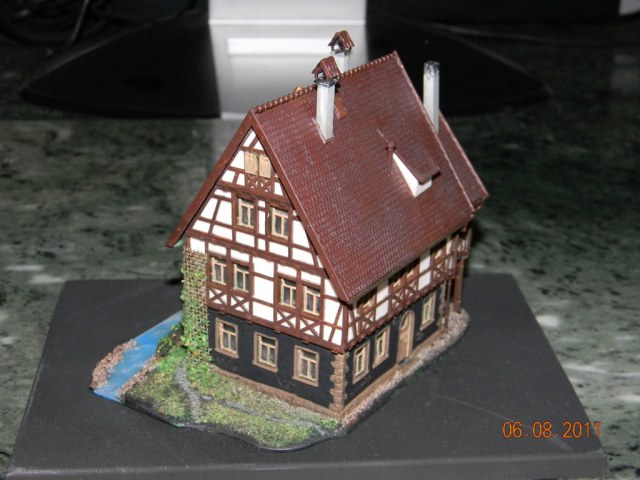 Масштаб модели 1:120 . Типовой загородный дом европейской архитектуры . Модель в принципе особых заморочек не приподнесла кое где небольшое количество облоя стыкуемость деталей приемлемая . Сборка произведена практически из коробки от себя добавил пару заборчиков арку и зеленый "угол" из сетки . Зелень идет в наборе (правда крупновата - пришлось измельчать ) песок с Исети . Собирал в общей сложности часов 5-6 в качестве передышки и успокоения нервов. Архетектура у нас на коробке совсем в унылом состоянии вот и решился выложить этот домик в качестве поддержки и для процветания зодчества