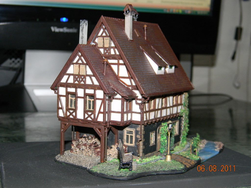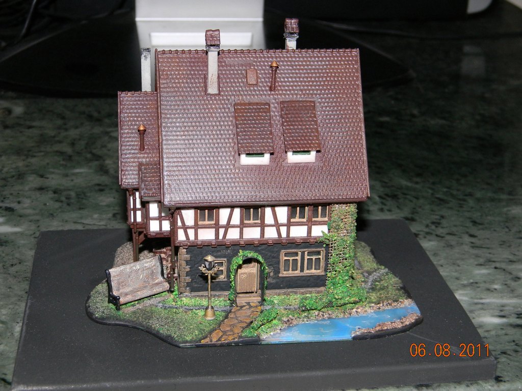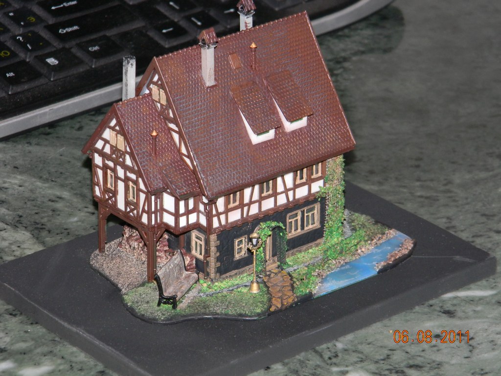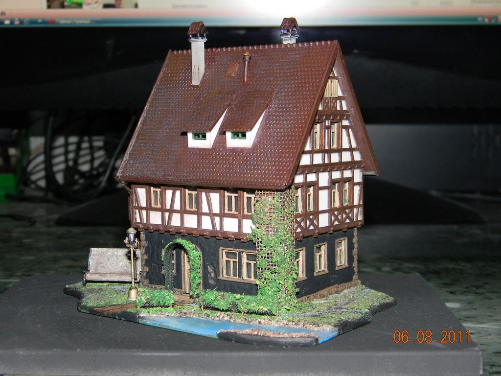 Спасибо ВСЕМ за отзывы ! Начну по порядку : Покраска почти по фото (когдато видел в журнале подобный котеджик ). в наборе к нему идет блок на две батарейки а с ним две лампочки все это хозяйство вставляется внутрь домика т.к.внутри он пустой но я сделал немного проще изнутри покыл окна светящейся краской и когда ночь выкл. свет он сам по себе изнури светится (экономия на батарейках )А на счет людей и животных надо подумать ! ( идейка с маленькой диорамкой уже наметилась )