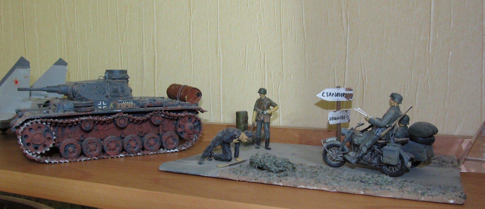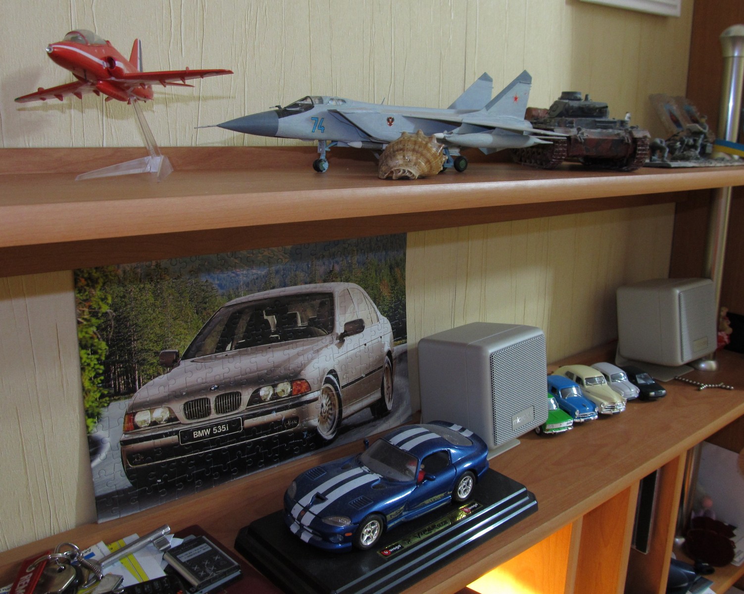 Пора бы определиться с темой и масштабом и обзавестись застекленными полками. Пыль - главный враг моделиста.