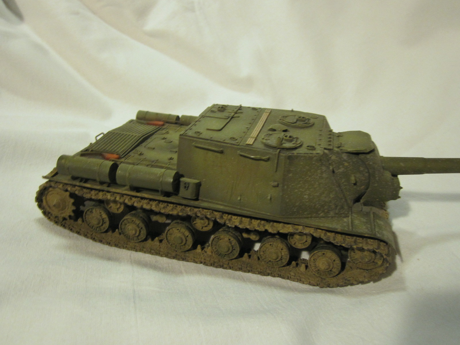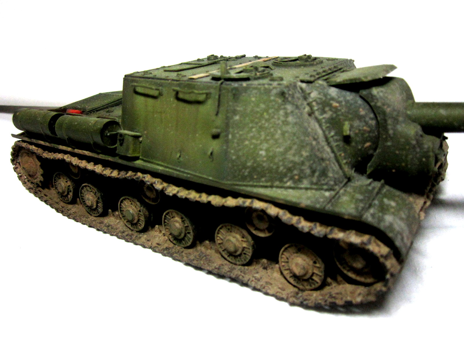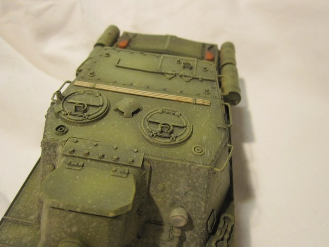 фото бы по больше. Грязь на ходовой: Дорожки от катков должны были остаться, и на ведущей звезде рабочие поверхности тоже отчищаются от грязи очень быстро, а у вас она ровным слоем везде нанесена... Ну и выхлопные патрубки слишком рыжие.