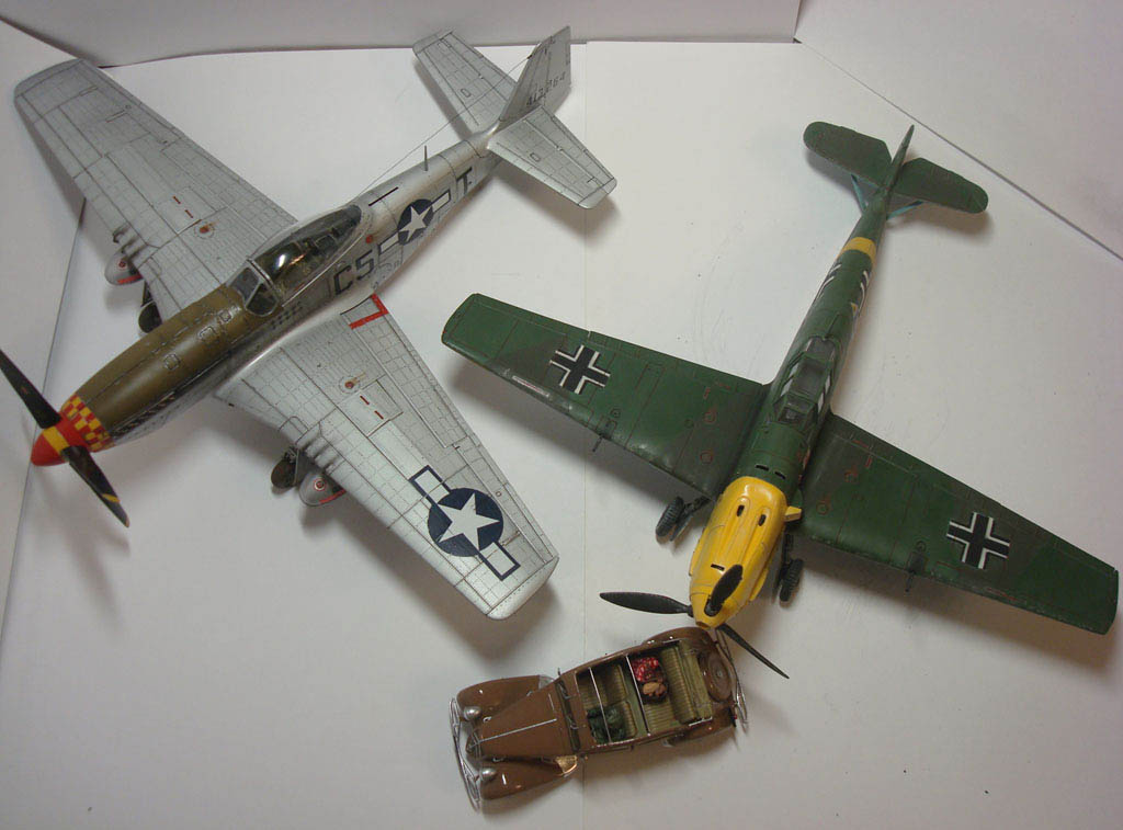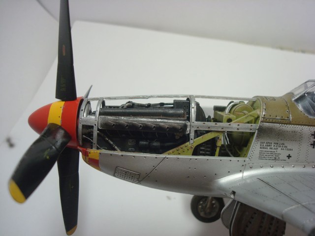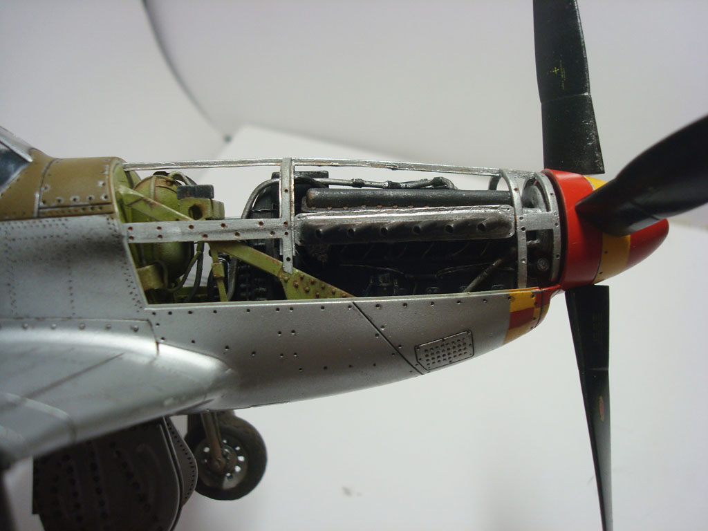 Приветствую всех, представляю вам свою двухлетнюю Мустанговскую эпопею делал её с 2009 по август 2011 года, иногда лень было или время не было, в общем такой срок получился, не когда не запускайте модель в долгострой потому что она вам надоест и будет стоять месяцами на полке, ну даладно в общем если собрать модель из коробки получится обычный самолётик, я решил его максимально переделать и доделать всё что позволяло моим рукам и больной извращерённой фантазии, так вот: был доработан двигатель по фотографиям и чертежам, пытался изобразить все патрубки и шланги но возможно и не все доделал, далее переделывал кабину в ней переделаны педали, штурвал, боковые стенки сделаны чуть толще и установленные на них приборы были приподняты чуть выше а не как у Драгона сделаны, далее переделаны ниши для шасси, сделал в них углубления, и чтоб убиралась посадочная фара во внутрь, также откр. и закрываются люки, складываются шасси, открываются закрылки, подвижные элероны и рули высоты, киль и открывается фонарь кабины ну и капот естественно и пулемёты