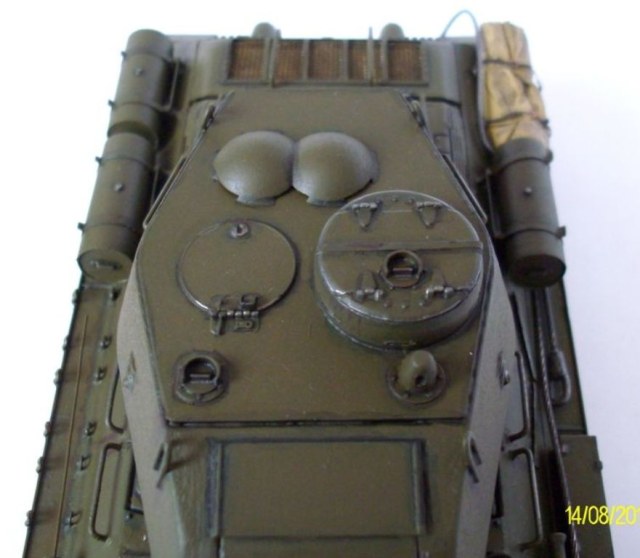 Отличный танк,окраска и тонировка понравилась,но по моему колпаки вентиляторов на ранних машинах были по центру башни(сам сейчас собираю эту модель)и шиповое соединение все же лишнее,прикрепить файл с чертежом не могу,тк сейчас в командировке.Еще,говорят косяк у этой модели с маской пушки(шире чем надо),но я тоже ее не исправлял.В целом отлично!