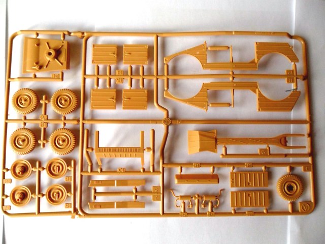 Пластик желтого цвета, традиционный для "Тамии". Детали отлично проработаны, имеют четкую детализацию, облоя и утяжин нет, проработаны довольно мелкие детали. Я думаю, что стыкуемость деталей, как обычно у "Тамии", на высоте. Единственно, что можно заменить, это фары (на "Эльф"), но и это не обязательно.