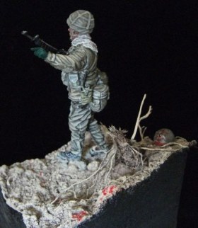 исполнение хорошее, но вот матчасть -полное несоответствие, говорю как человек служивший в армии Израиля, начнем с того, что ни один Израильский офицер никогда бы не повязал на шею арафатку,во первых по идеологическим соображениям, во вторых выше стоящее начальство просто не позволит, цвет формы не соответствует действительности- цвет должен быть олив драб,или хаки драб, разгрузка- за 3 года службы ни разу не встречал подобной, даже из тех, что были сшиты на заказ, винтовка - модификацией М16А1/А2 офицеров не вооружают уже лет как 20 даже резервистов- должен быть М16А1/А2 карабин или А4, с уважением)))