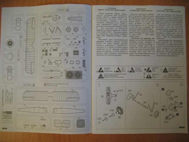 В коробки находится 4 литника с замечательным литьем ,следов толкателей нет и утяжин тоже. 2 листа с инструкцией и 1 лист с декалями.