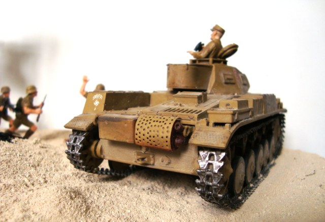А пока я немогу сидеть и корпеть над ОДНОЙ работой, по пол года. Мне проще сделать 10 и в каждой устраняя те замечания и советы которые вы все мне даете. Это интереснее и разнообразнее. Я лучше еще одну диораму с любимым Африканским корпусом сделаю, в которой учту все ваши замечания.