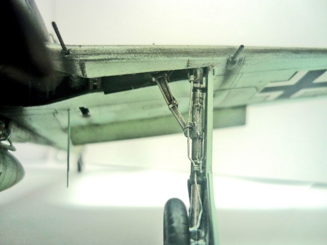 Если вы в кабину поставили выключатель на WGr-21 - эта панель между нижней основной приборной доской и переключателем бомбодержателя (которые Эдуард дает без разбора в травлении на все модели), то нужно было сделать два крюка на нижней части крыла.