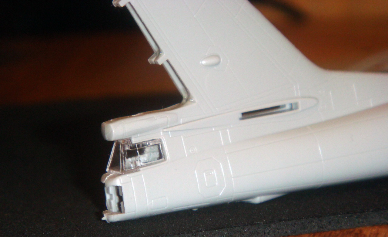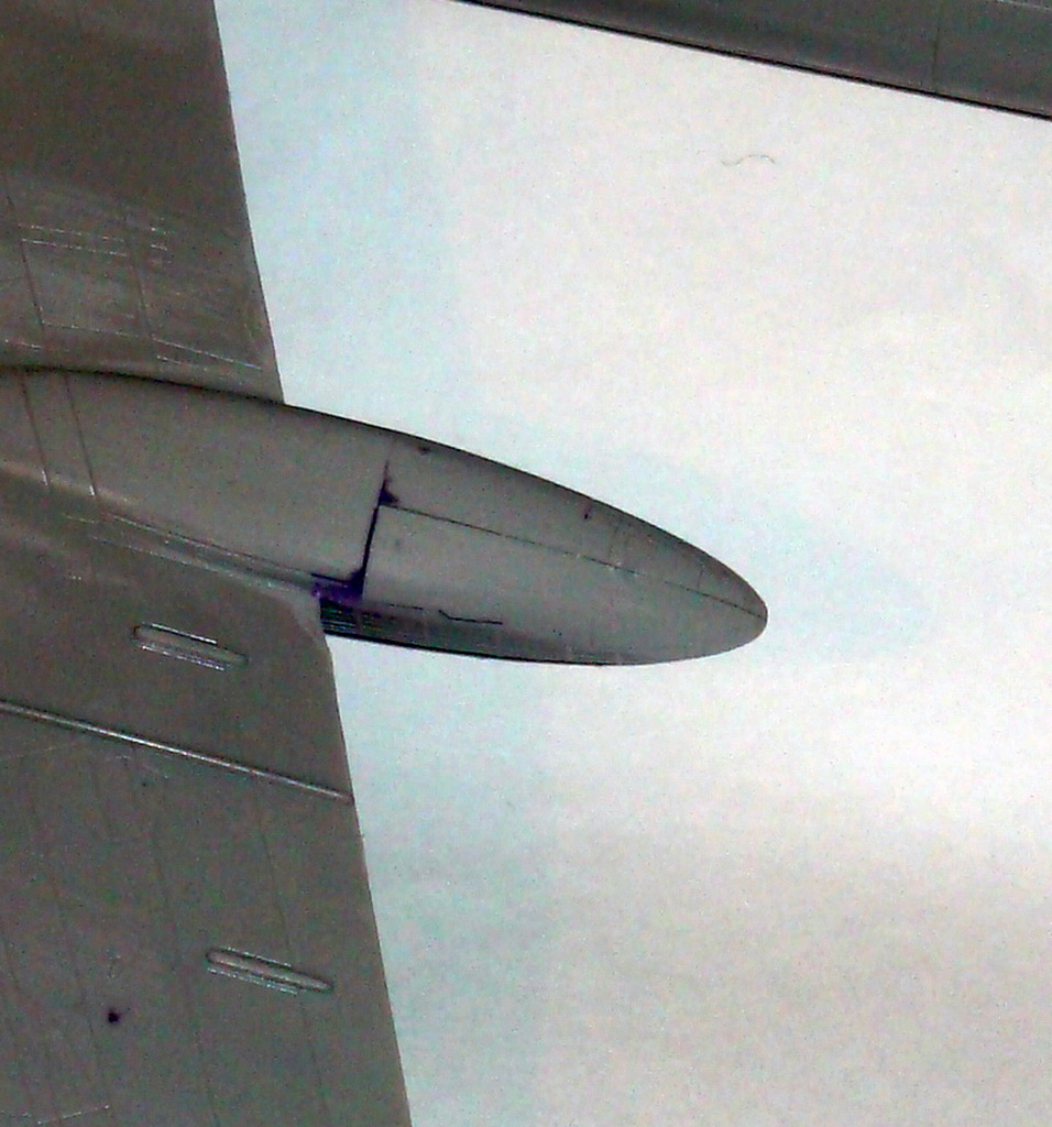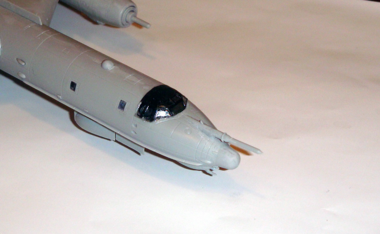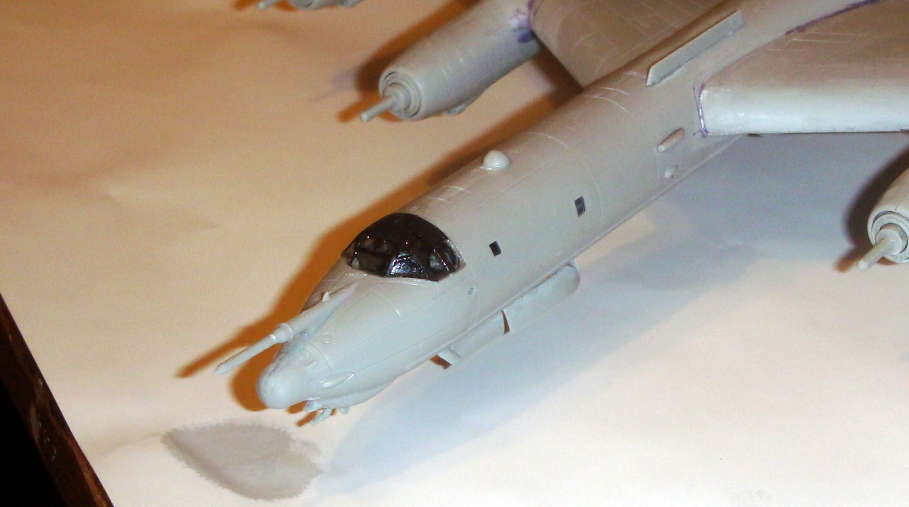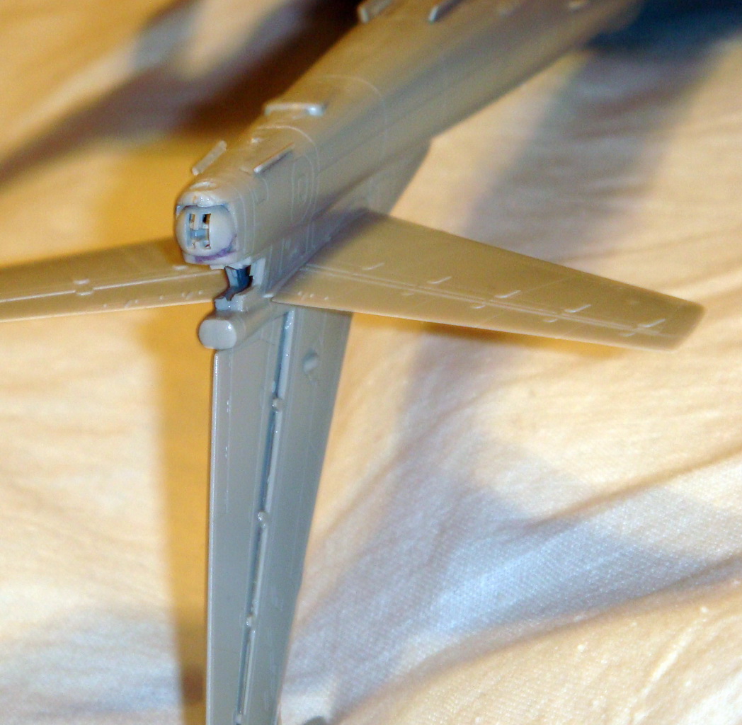 Знаете. Самым проблемным было разбираться с гондолами ТВД. Как их не вставлял и не примерял насухо - ни как не вставали в место своего назначения. Пришлось стыковать так, а потом уже выравнивать это всё наждачкой, потом шпаклевать и опять выводить контуры. Потом вёз модель на фотосессию. Отломилась штанга приёма топлива (Дозаправочная Штанга). Пришлось бегать за суперклеем.