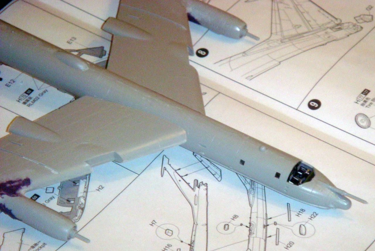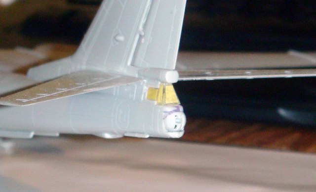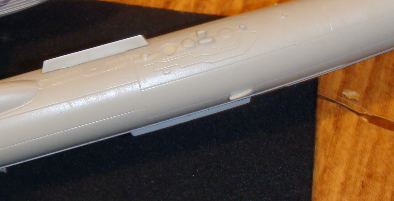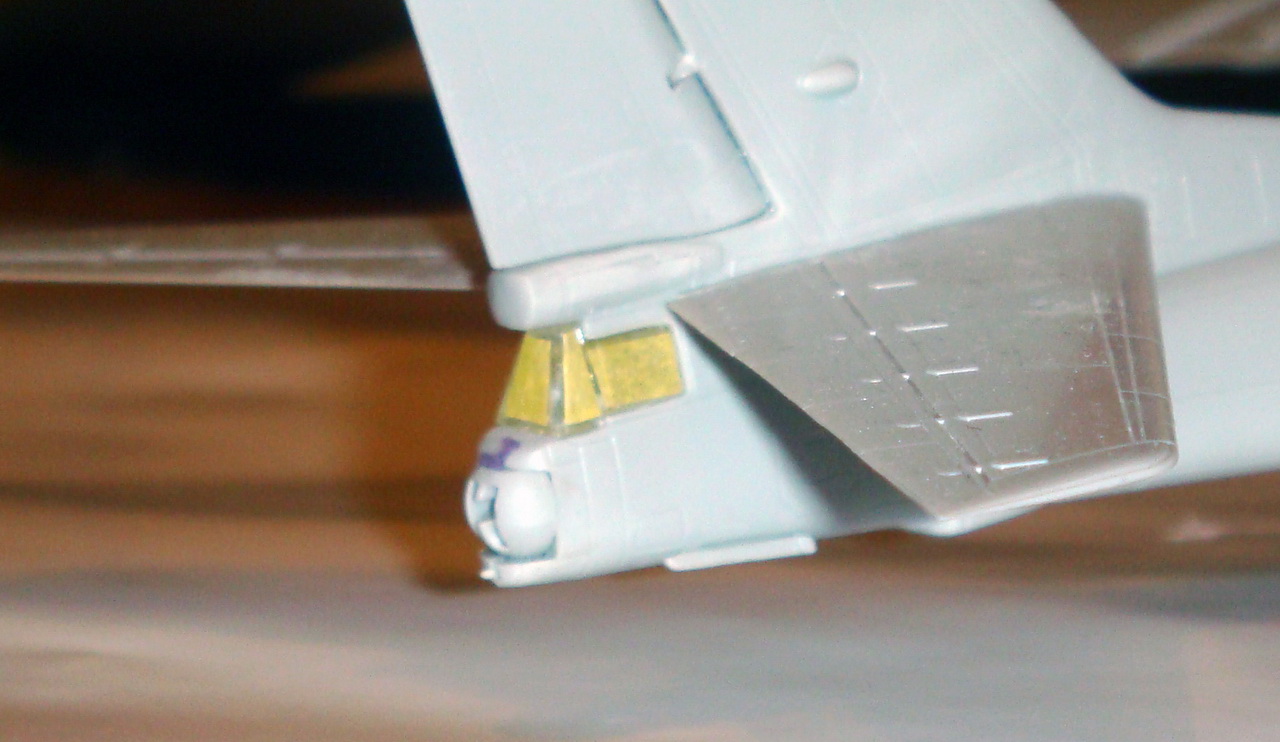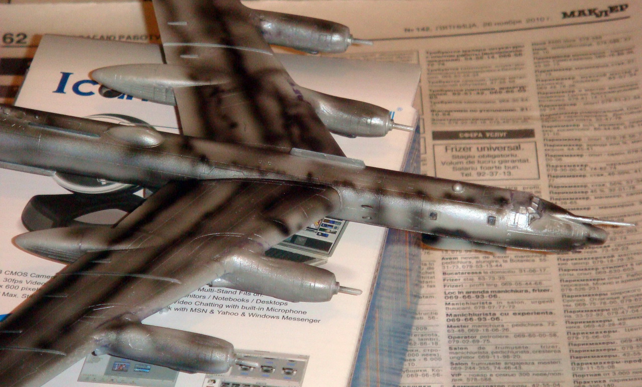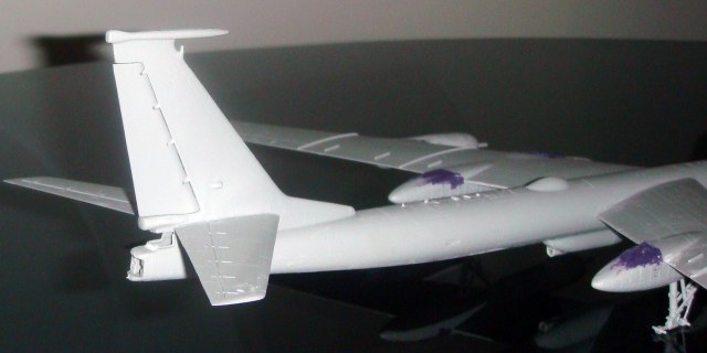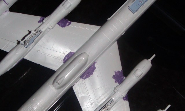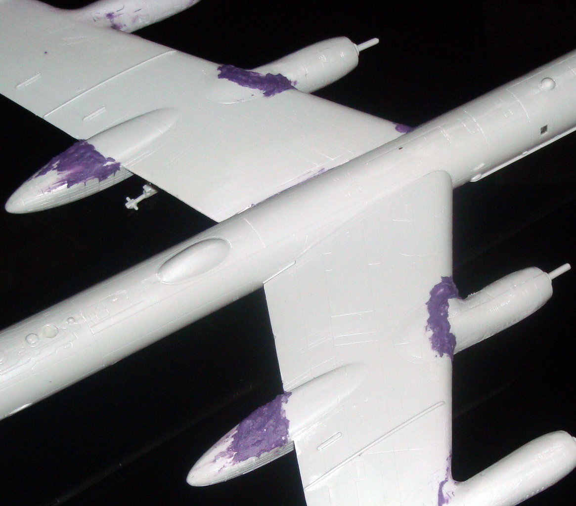 Знаете. Самым проблемным было разбираться с гондолами ТВД. Как их не вставлял и не примерял насухо - ни как не вставали в место своего назначения. Пришлось стыковать так, а потом уже выравнивать это всё наждачкой, потом шпаклевать и опять выводить контуры. Потом вёз модель на фотосессию. Отломилась штанга приёма топлива (Дозаправочная Штанга). Пришлось бегать за суперклеем.