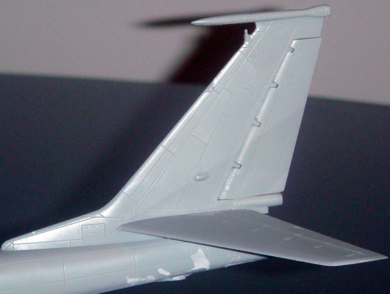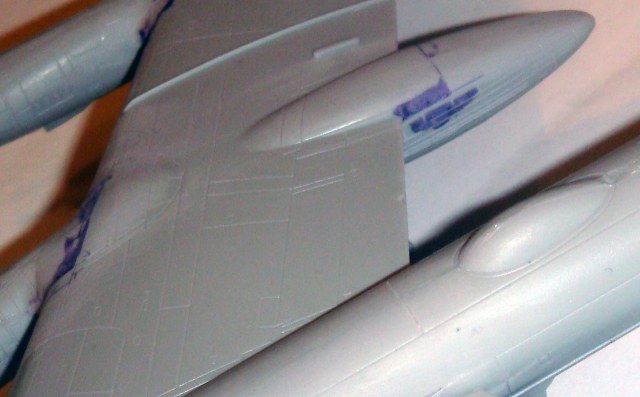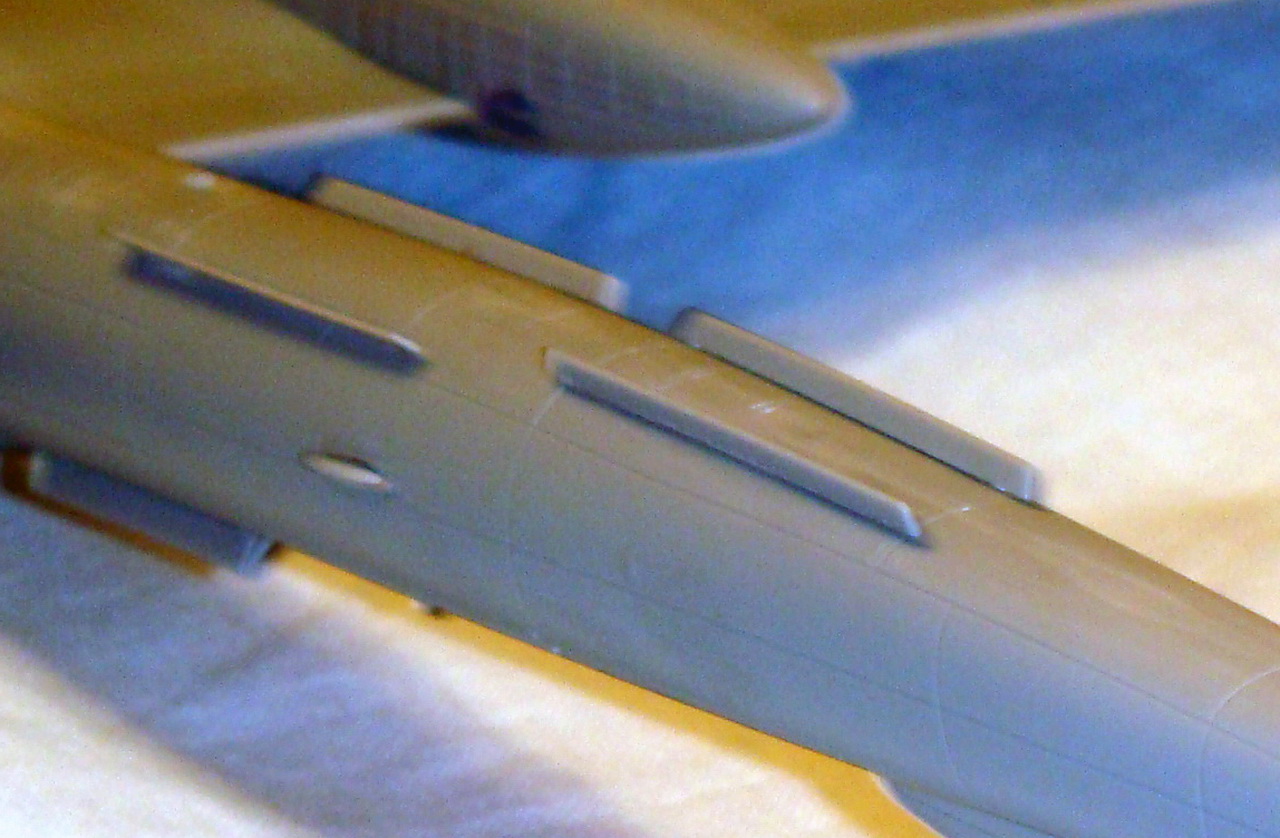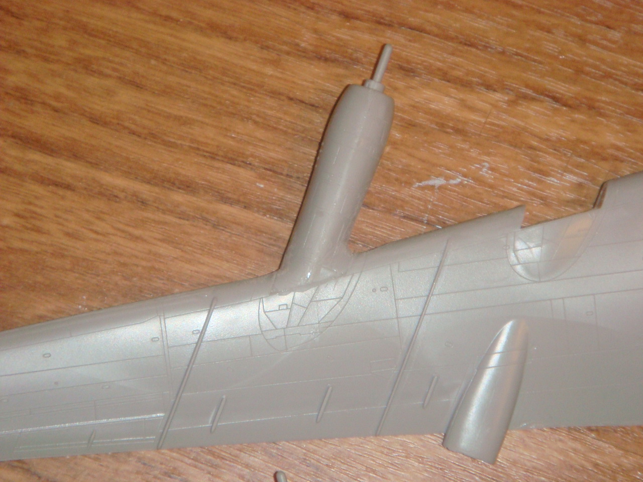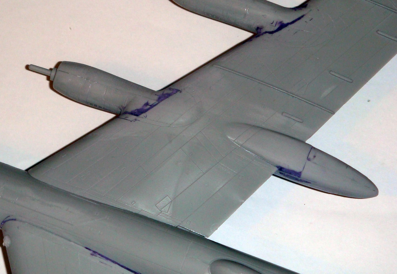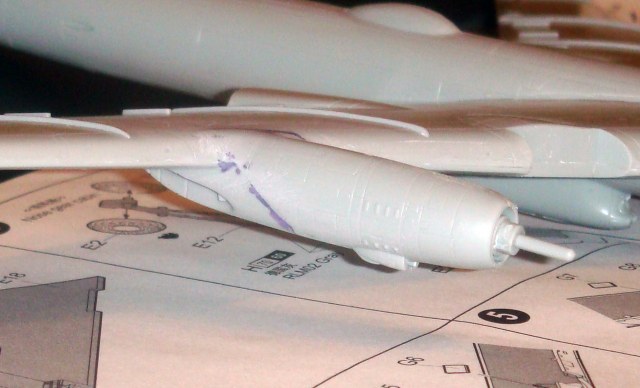 Знаете. Самым проблемным было разбираться с гондолами ТВД. Как их не вставлял и не примерял насухо - ни как не вставали в место своего назначения. Пришлось стыковать так, а потом уже выравнивать это всё наждачкой, потом шпаклевать и опять выводить контуры. Потом вёз модель на фотосессию. Отломилась штанга приёма топлива (Дозаправочная Штанга). Пришлось бегать за суперклеем.