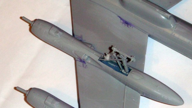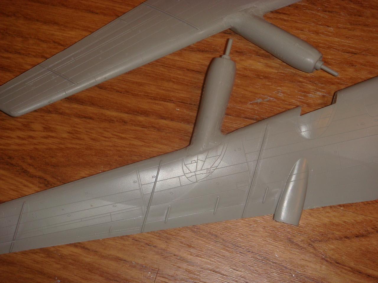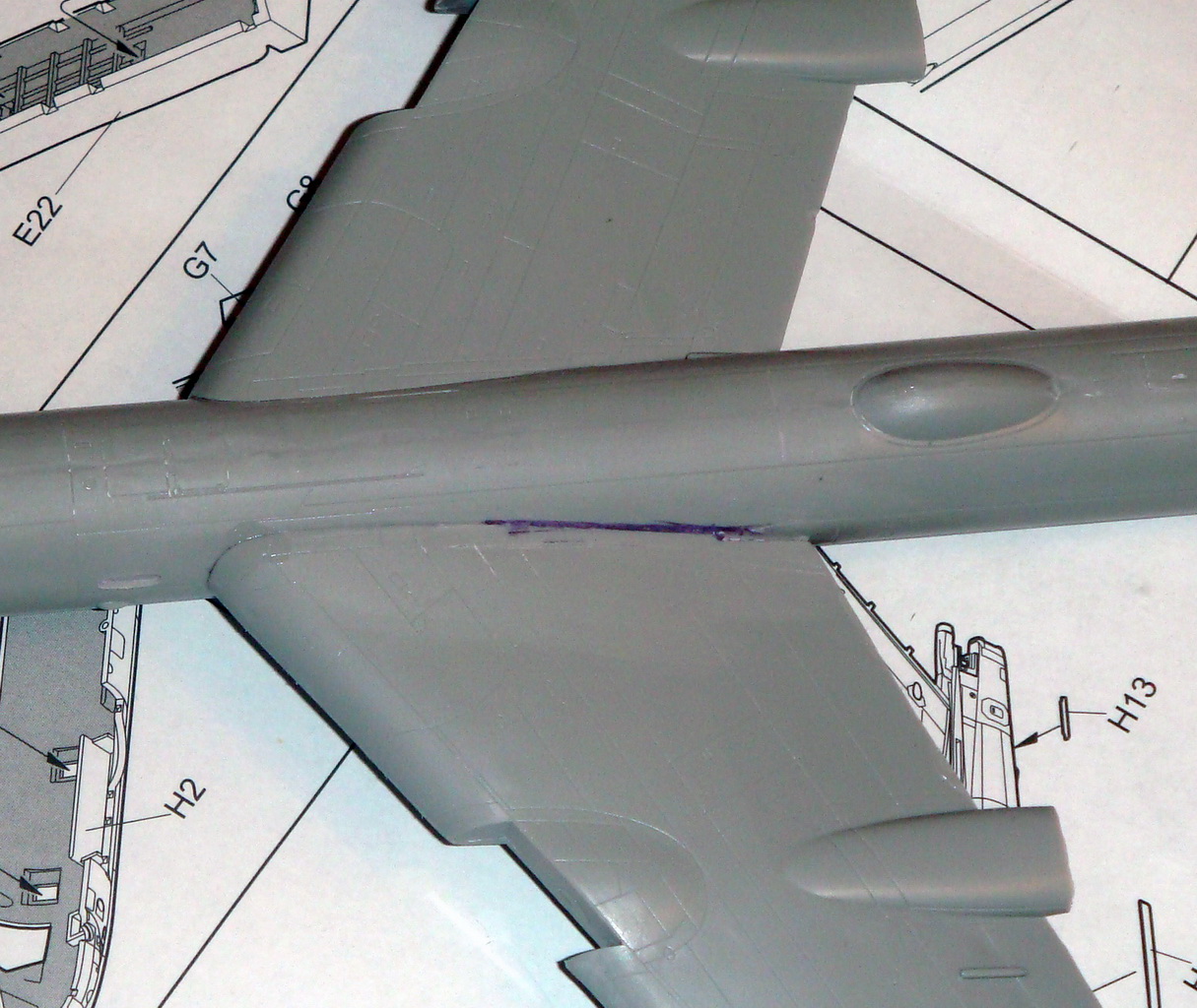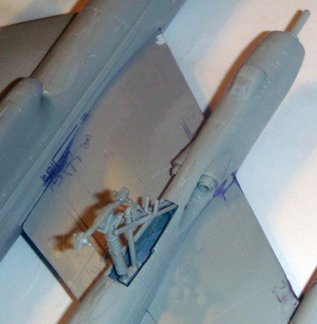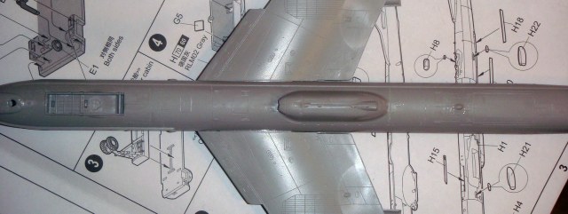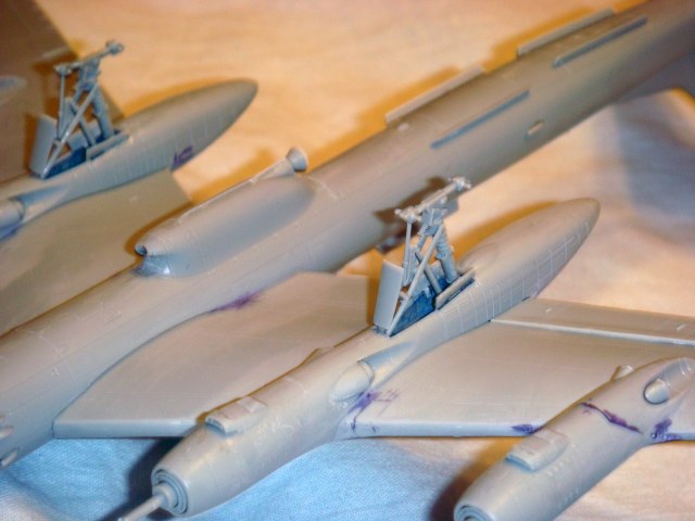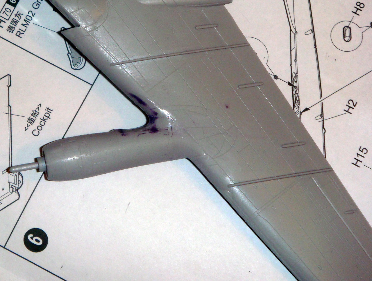 Знаете. Самым проблемным было разбираться с гондолами ТВД. Как их не вставлял и не примерял насухо - ни как не вставали в место своего назначения. Пришлось стыковать так, а потом уже выравнивать это всё наждачкой, потом шпаклевать и опять выводить контуры. Потом вёз модель на фотосессию. Отломилась штанга приёма топлива (Дозаправочная Штанга). Пришлось бегать за суперклеем.