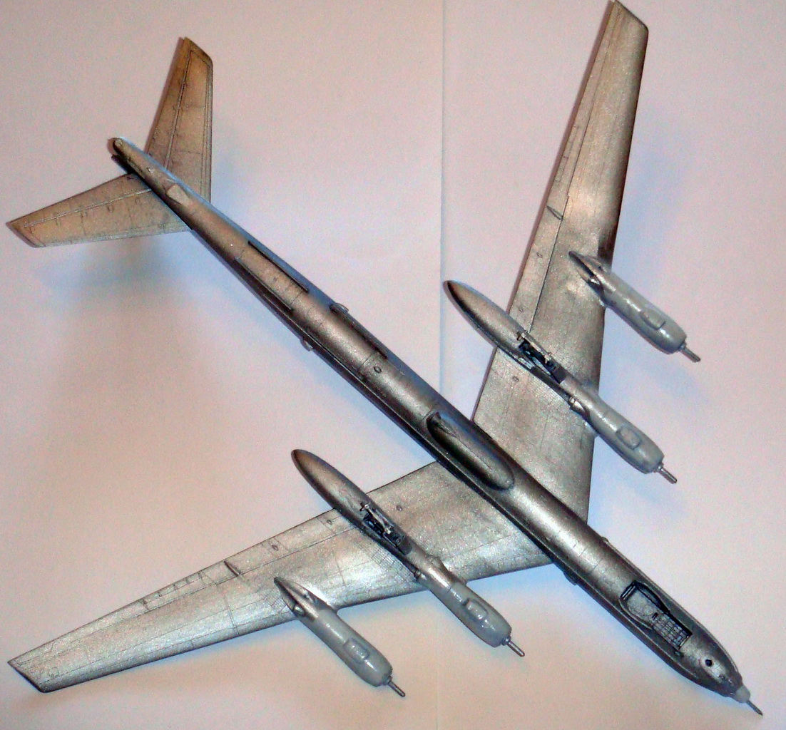 Изначально были искорёженным стойки шасси и поведён киль немного вправо. Из-за этого и стадилизаторы немного не симметричны. Когда накладывал маски на фонарь, он треснул. Пришлось заменить фонарь со старого Ту-142МР (Я два строил) В общем, на данный момент это моя последняя построенная модель. Сейчас упорно тружусь над Су-15Тм 1/48 от того же Трумпетера. И всякие примочки у меня для него есть: Колёса Экипаж, Травлёнка Эдуард 2 набора, стойки шасси от Скейл Эйркрафт Конвершн и обтекатель РЛС от КБ с Декалями Бегемот. Так что, при всём моём желании что-то подправить на "Орлёнке", я не могу из-за отсутсвия времени. А покраска мне самому очень нравится, ведь я очень старался покрасить его так, как мне этого хотелось. Получилось это у меня на 85%.