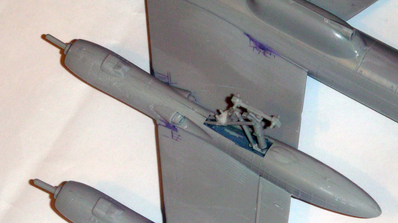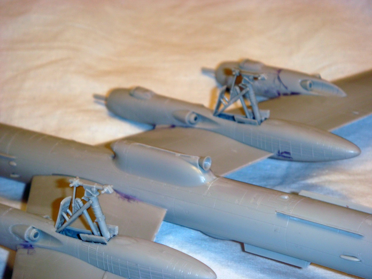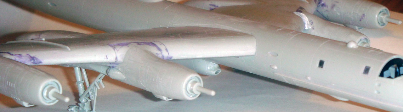 удивило, что ты приклеил створки шасси, стойки, а потом красил. я клею всю мелочь вконце, и колеса ровняю, не чего не гуляет. не смотрел мои ту-16 и ту-160?