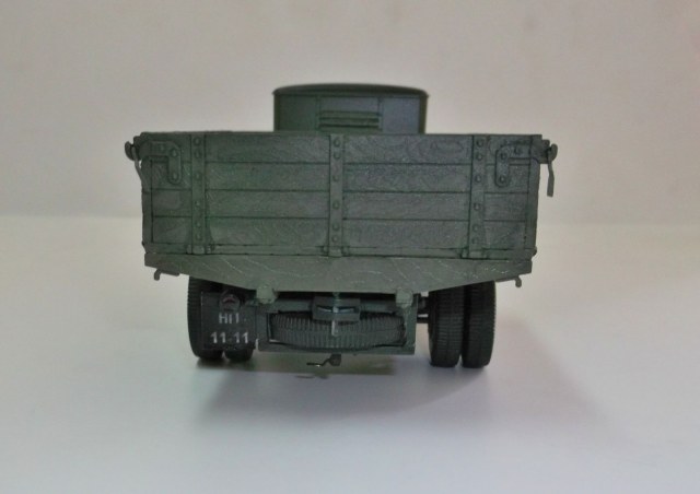Аккуратная покраска, подход к мелочам заслуживает уважения, двигатель на отлично смотрится. Однако, конечно, дополнения в виде рычажков, сосков камер, тяги это все отлично, но обратив внимание на такие мелочи, к сожалению упустили более явные и грубые ошибки матчасти данной модели, например отсутсвие выштамповок на подножках, неправильные жабры боковин капота и сам капот, излишне толстая как "броня" рамка лобового стекла, неправильная геометрия крыльев, козырек кабины толстоват и еще кое что по мелочи, также жаль что не дождались колес от "Оружейника". Но не смотря на это модель вышла отличная, понравилась.