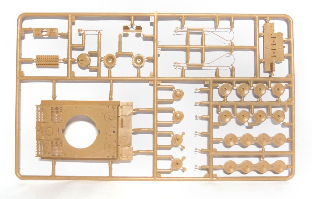 Не понравилось исполнение опорных катков….не знаю, может так и лучше, сборка покажет. А вот то, что шанец отдельно выполнен, это вот как раз для меня весьма хорошо. Так же понравилось как выполнены гусеничные ленты, стыкуются в одном месте, и имеют в местах сгиба специальные "пропилы"