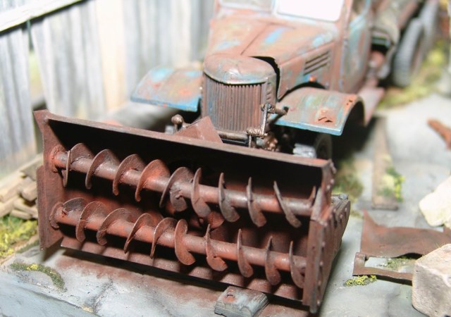 Нельзя так правдоподобно делать!!!Я умираю!Снегоуборщик отпад,ржавчина,лужа на крыше кабины,пёс,занятый дело - обалдеть!Мусор,гадость всякая - отпад!