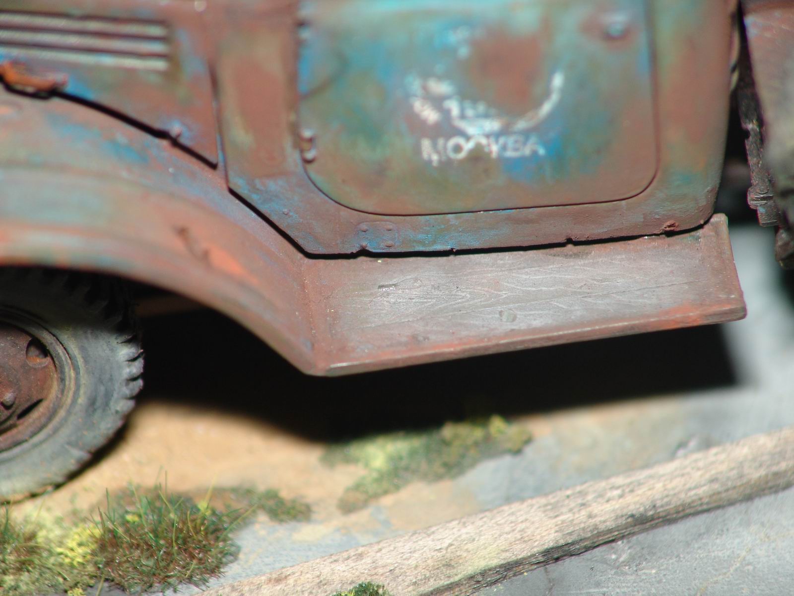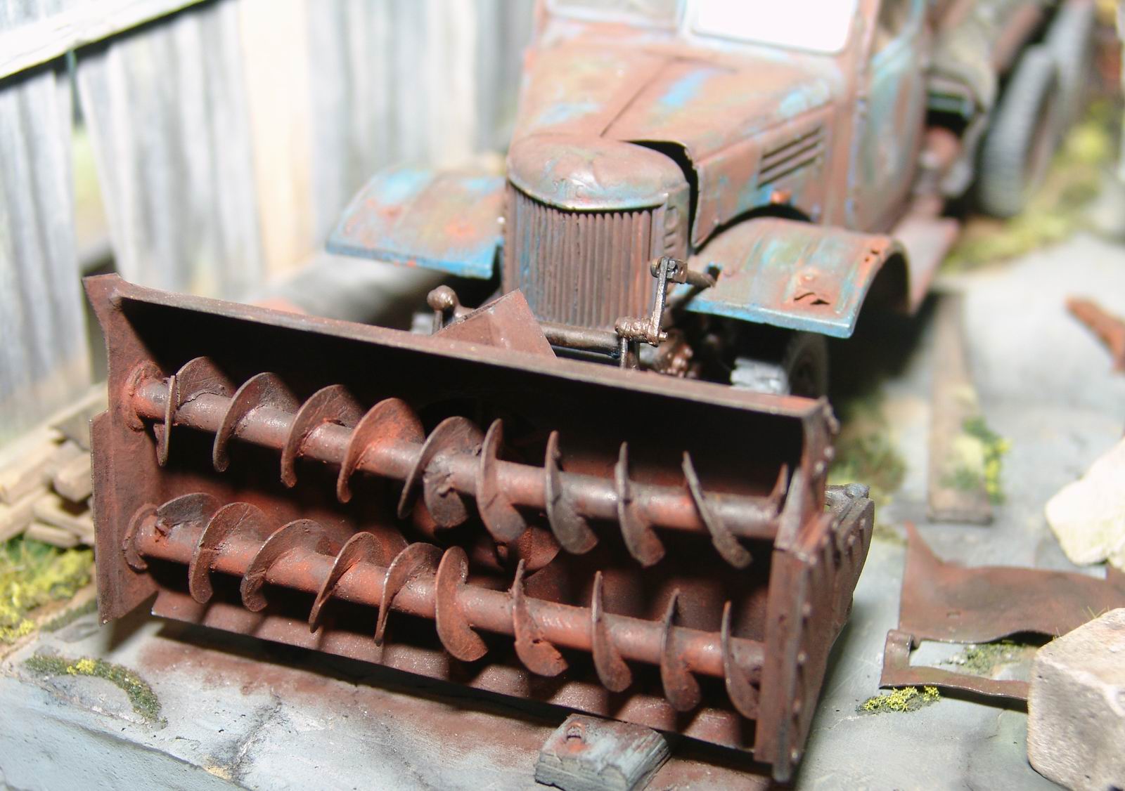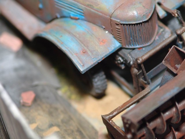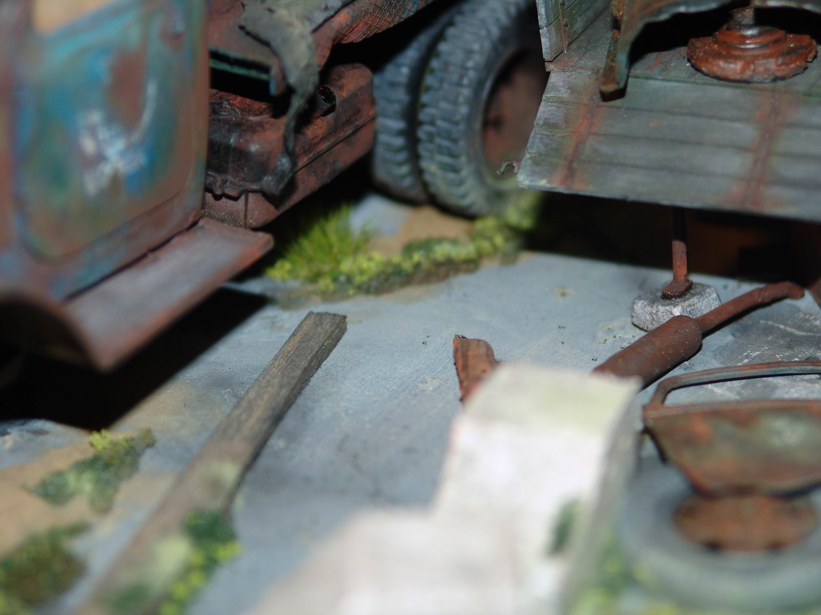 а мне особенно лужица на крыше понравилась. головка блока цилиндров на движке из цв. металла, а поэтому не ржавеет. а диорама просто супер