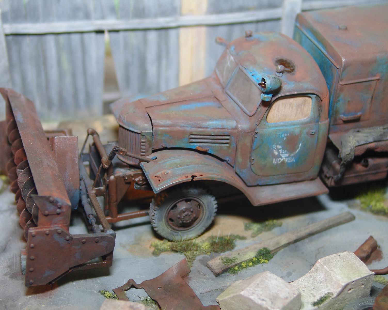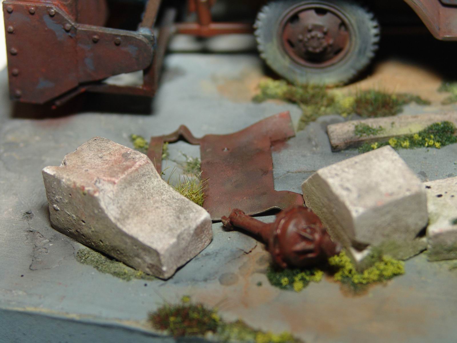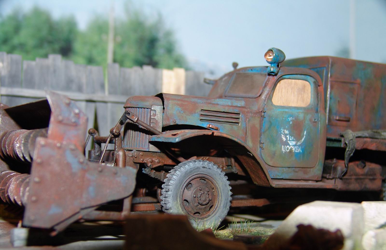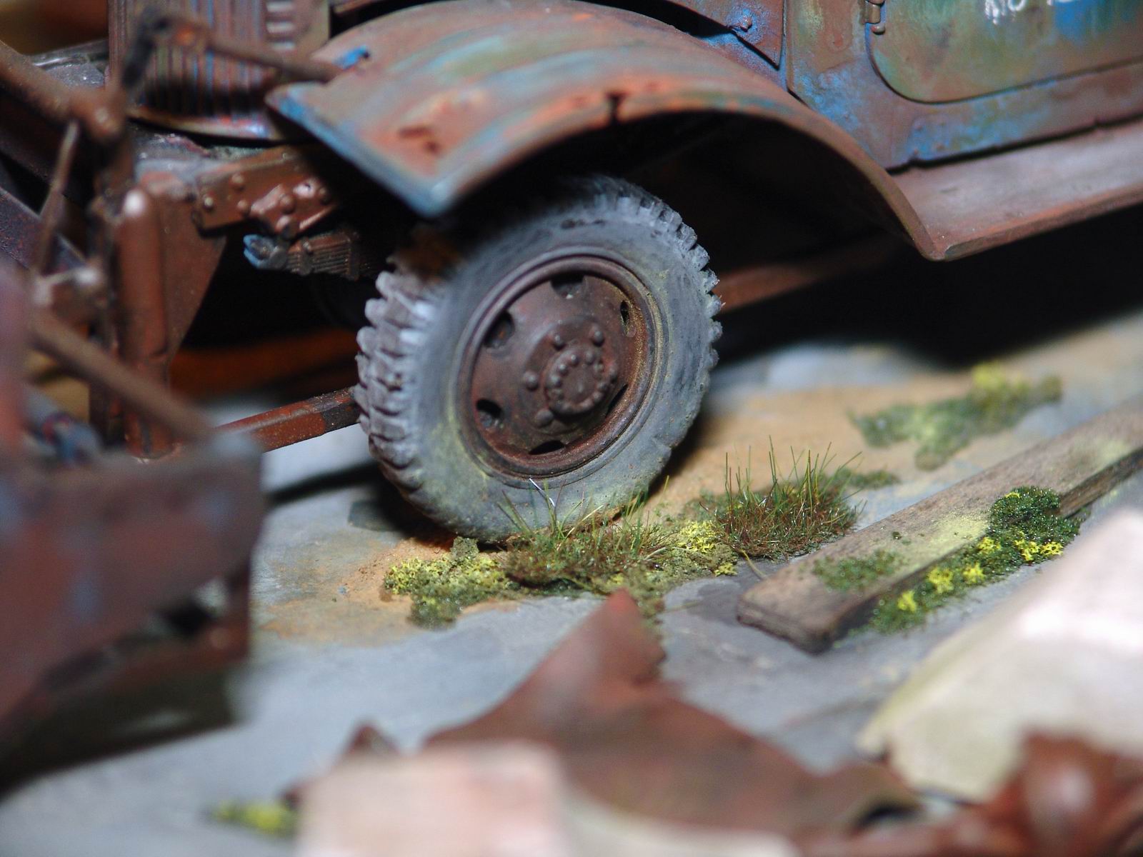 а мне особенно лужица на крыше понравилась. головка блока цилиндров на движке из цв. металла, а поэтому не ржавеет. а диорама просто супер