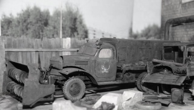 Выношу на обсуждение диорамку "Забытый трудяга" . Диорамка сделана по личным мотивам, в молодости довелось проходить практику на автобазе, вот там и был такой агрегат. Машина на диораме ЗиС-151 с шнекороторным снегоочистителем. Сама модель всем извесная Звезда, плюс самостоятельная доработка. Остальные элементы диорамки остатки из закромов моделиста)). Краски Тамия, пигменты Мастер пигменти МИГ , сухая пастель, акриловые художественные краски.