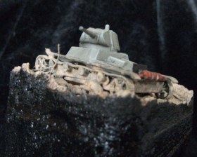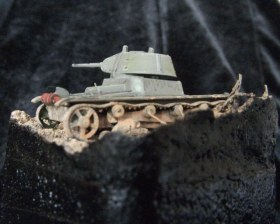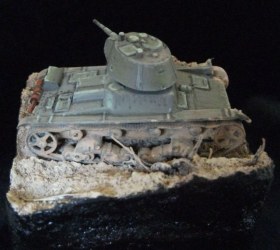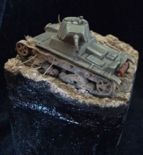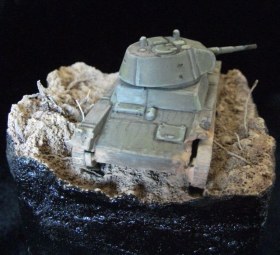 Танк окрашен акрилом "Звезда" и "Модел колор", пыль и гряз акрил "Андреа" и пигменты "МИГ". Основание окрашено акрилом "Звезда".
