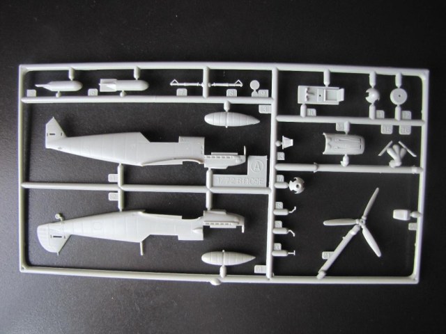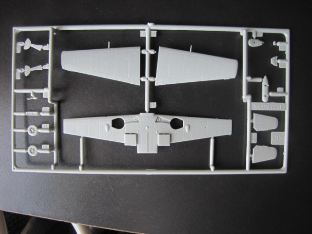 Aoda Plastic Model Ltd. - не самый известный производитель молелей, собственно говоря, эта модель - единственная, которую я видел (если не считать той же самой, но в варианте Trop, отличающейся коробкой и декалью). Коробка размерами и формой похожа на Academy, надписи - на китайском и английском. Открываем коробку. Внутри - запаянные в пакет два литника из серого пластика и один - из прозрачного (фонари на оба варианта). Геометрия модели похожа на правду, из заметных "косяков" - неправильная форма радиаторов ( либо доработать, либо сделать новые), слишком худой фюзеляж у киля (это вылечить немного сложнее), руль направления (делать новый) и ниши шасси.