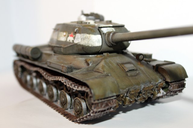 Изкоробочный вариант танка ИС-2 от Звезды. Про сам кит рассказывать смысла особого не имеет. Красилась акрилом Тамия. Смывка, тонировка и тэ дэ и тэ пэ производилась химией от АК interactive. Поверх также немного "запылен" тамиевским акрилом. Думаю, что это последняя модель где буду использовать "целлофановые" гуси ибо редкостный "пис оф щит", что, соответственно, привело к некоторым небольшим видимым дефектам. Вообще с винилом работать гиморно, но можно. Планировал поставить переднюю фару от Эльфа, которая в самый ответственный момент упала в бездну, что находится под рабочим столом и бесследно там исчезла. Фотографии выполнены при разном освещении.