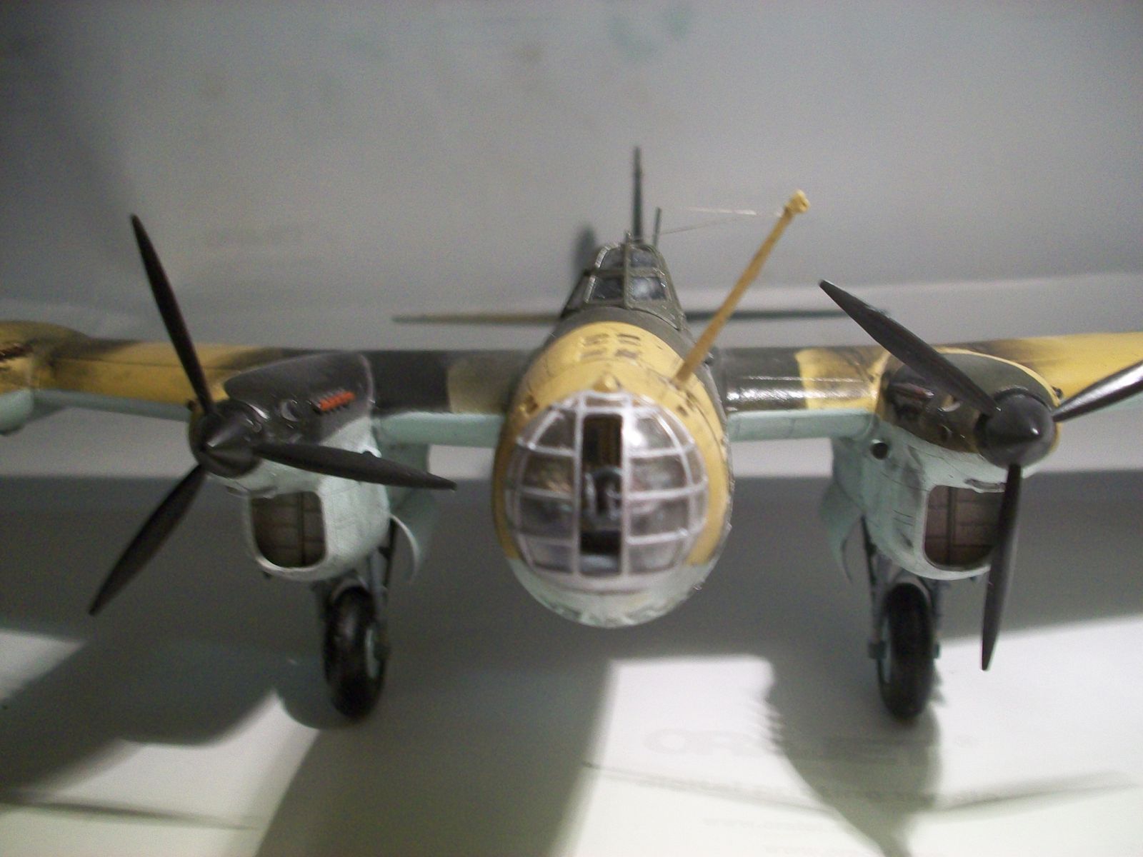 Модель понравилась больше, чем у коллеги Inginier'a, по простгой причине - окраска аэром, да и пятнистый камуфляж интереснее смотрится. Из критики: "старшие товарищи уже высказались". По мне единственно перебор с "обгадингом" нижних поверхностей крыла. По простой логике: они над землей на высоте выше человеческого роста. Как туда брызги от посадочной грязи могли попасть?