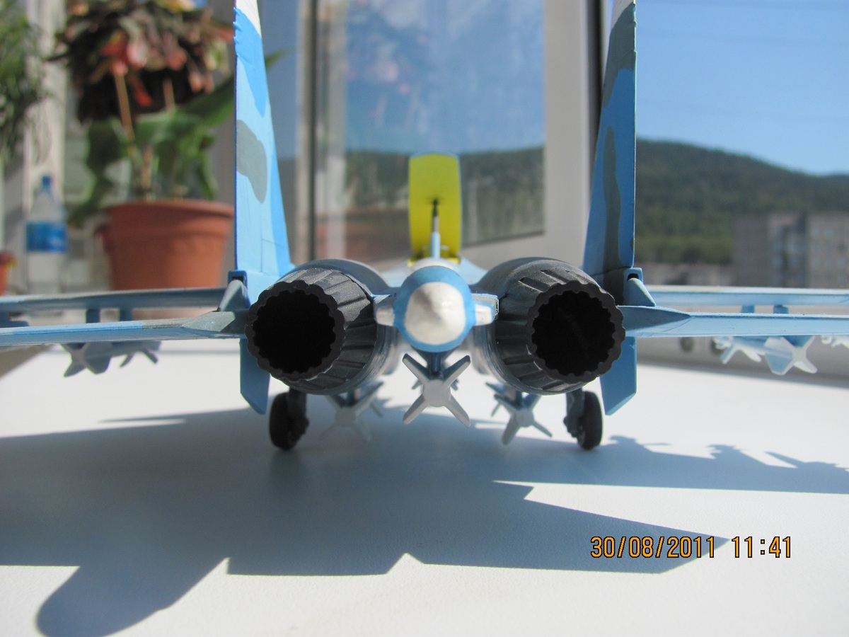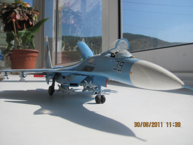 Собран полностью из коробки без каких-либо изменений и доработок. Покрашен акрилом из набора который прилагался в комплекте с моделью. Красил кистью, лаком не покрывал, смывку не делал. Схема раскраски использована из инструкции по сборке. Основная проблема этой модели в том, что крыло плохо стыкуется с фюзеляжем, но 3 минуты работы напильником легко убирают эту проблему. По сути это моя первая модель самолета, так что любая критика будет воспринята как полезный совет для работы над следующими моделями.