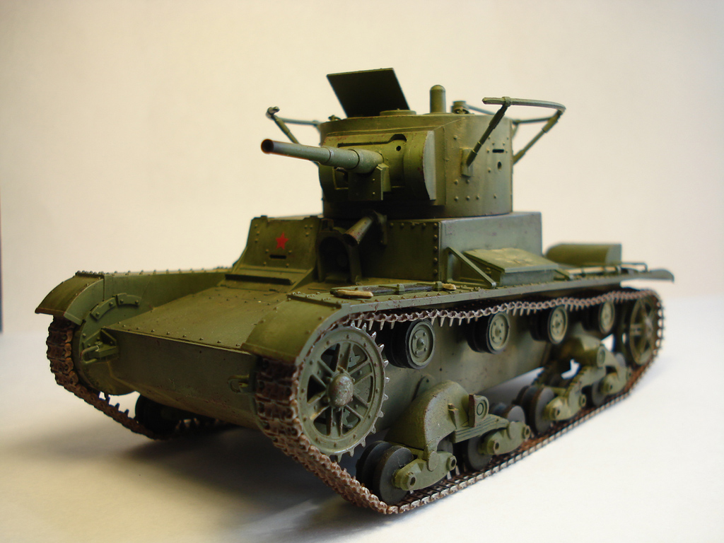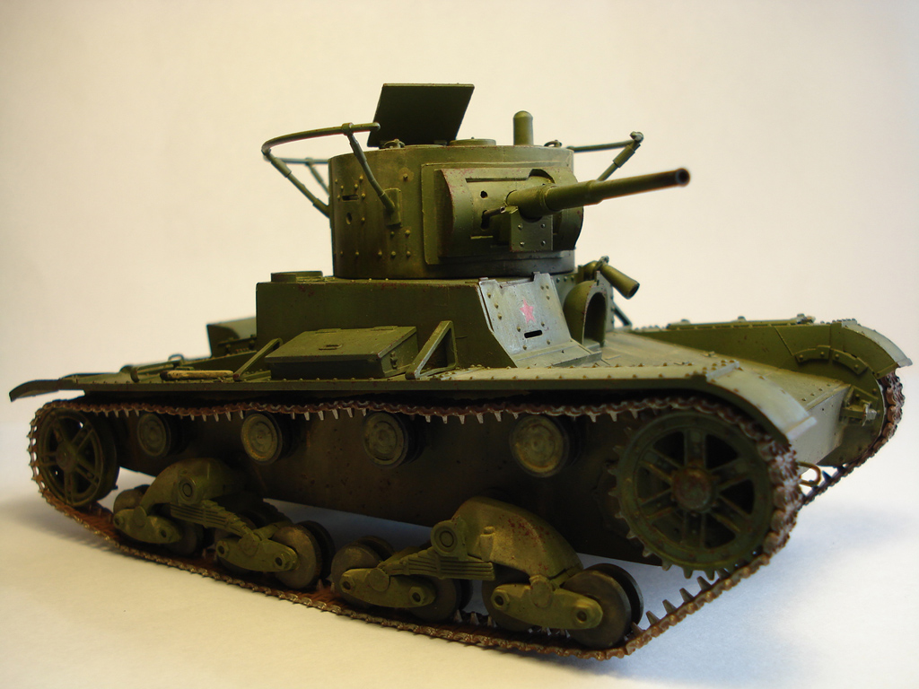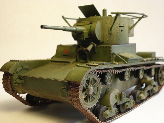 Здравствуйте, каропчане! Выставляю вам свой Т-26. Использовал Комплект ЗИП и ствол от ModelPoint. Привязки к конкретной модели не делал. Постарался привести машину к образцу 1933 со сварным корпусом.