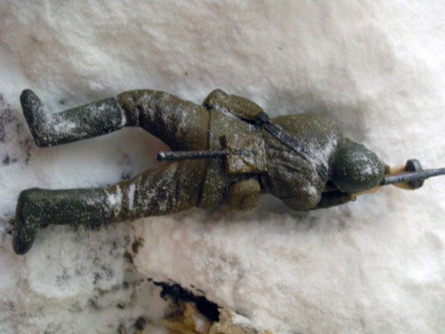 Работа понравилась.Про фотки уже сказали.Есть только одна придирочка.-такое ощущение что лежачий солдат немного висит в воздухее,но это моё мнение.А в целом хорошо.Удачи в будущих работах!