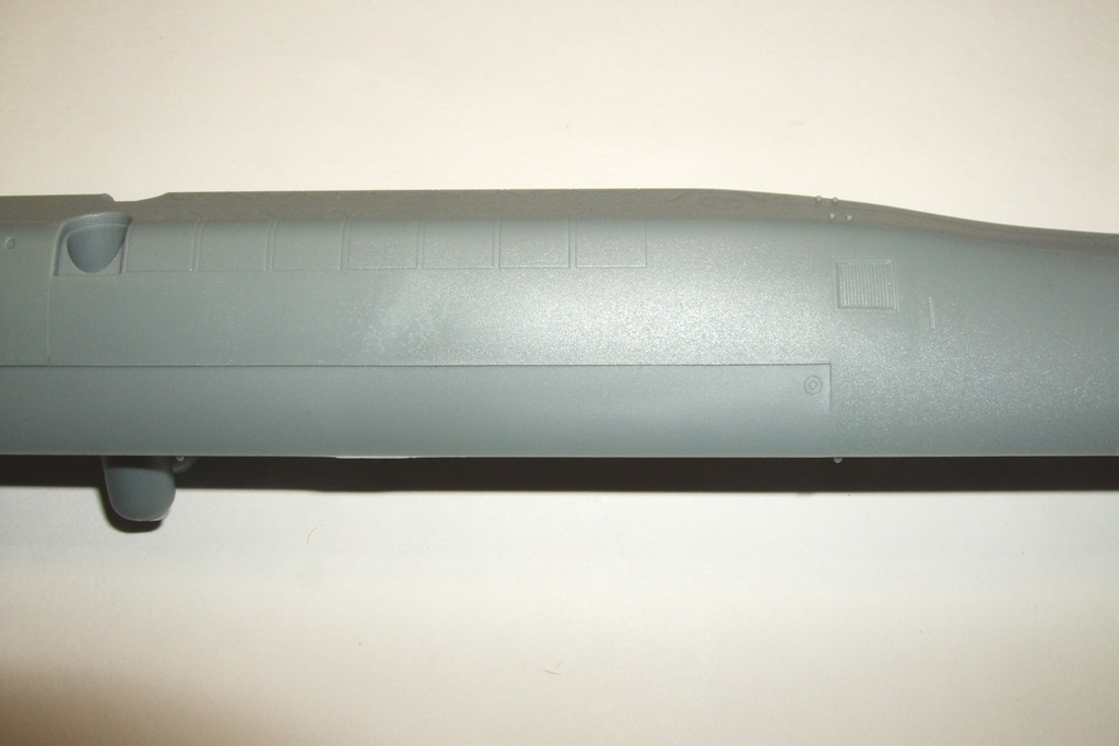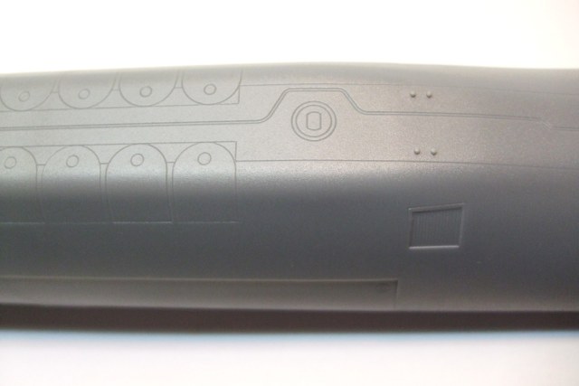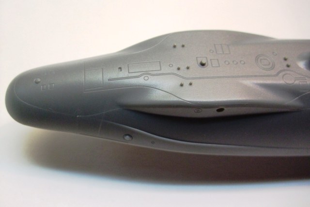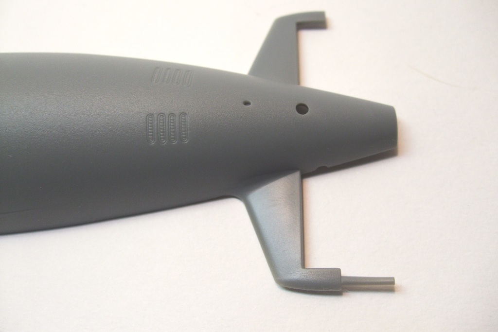 Облоя на деталях нет, зато присутствуют утяжины на рулях. Справедливости ради стоит отметить что рули у прототипа весьма толстые. Еще из недостатков можно отметить следы стыков пресс-форм на половинах корпуса.