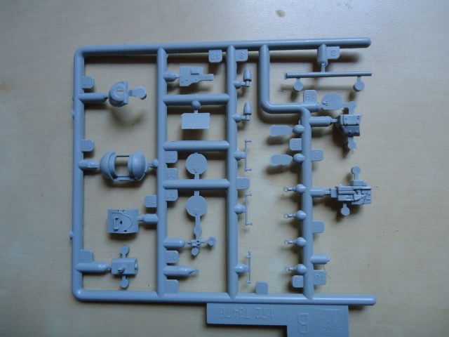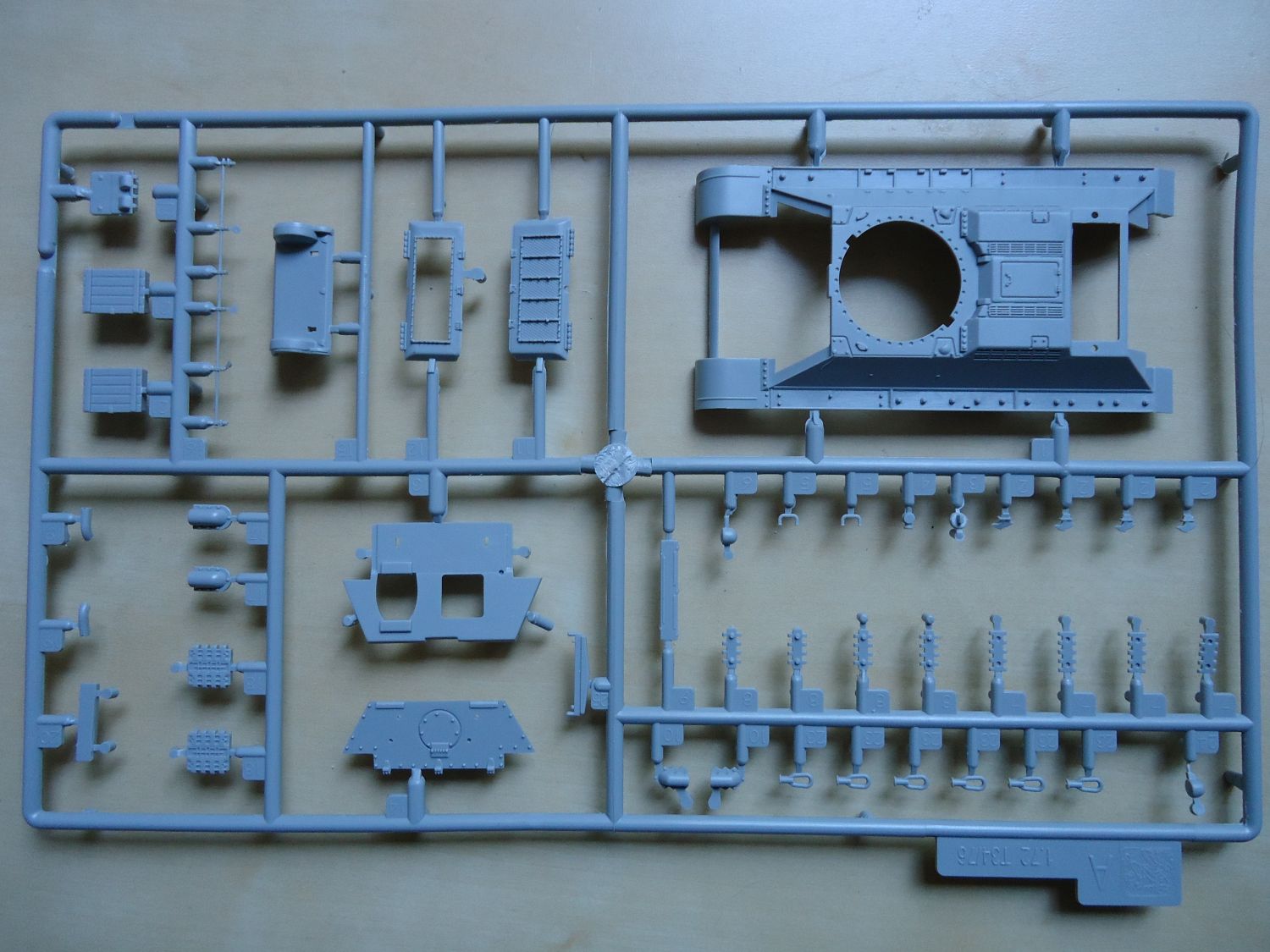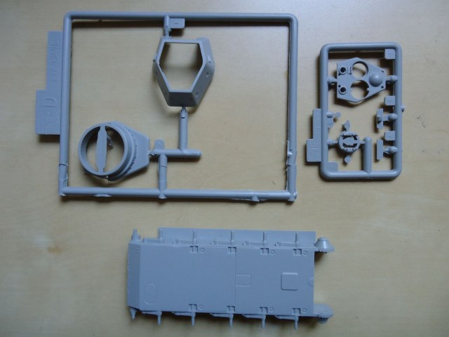 в стандартной дрэгоновской коробке 4 небольших литника с деталями, плата травления, пакетик с катками, декаль на 4 варианта, металлический трос. все в отдельных пакетиках.