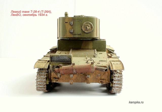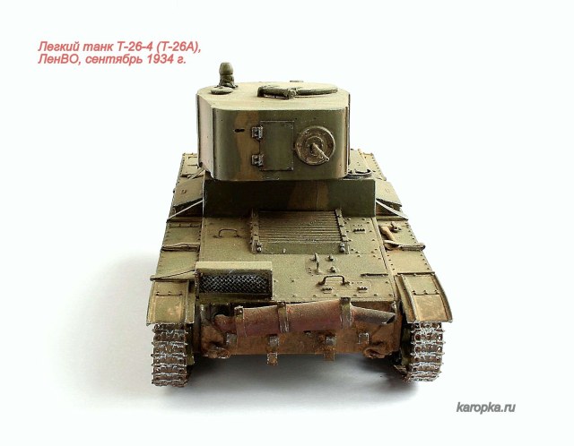 Алексей, на первом фото танк с экспериментальной башней А-43 самоучки Дыренкова, которая была забракована. Ходовая разлетелась при опытых с ПС-3 в сентябре 1933 г., на серийные 5 машин поставили КТ-28. Последние 2 фото - это фото танка, который был единственный испытанный на полигоне НИБТ и имел башню из некондиционной стали. Заказ на Т-26-4 начал исполняться только в сентябре 1934 г., все были с пушкой КТ-28, и защитой воздуховода от осадков (предложенной Гинзбургом в начале 1934 г.). Прорыв газов в боевое отделение произошел на учениях 19.09.1934 г., экипаж, кажется, погиб. Вот после этого и был снят заказ на 50 машин. Так что у меня корпус от серийных машин. А по башне - я же сам и написал, что она косячная.