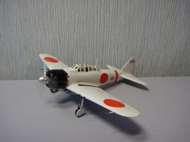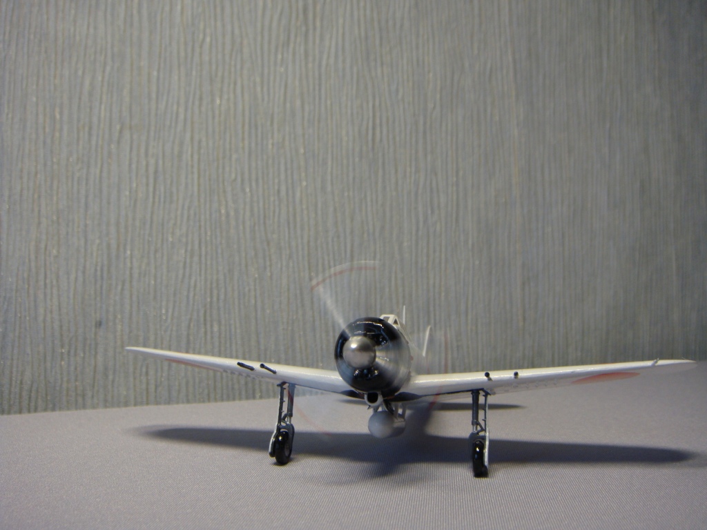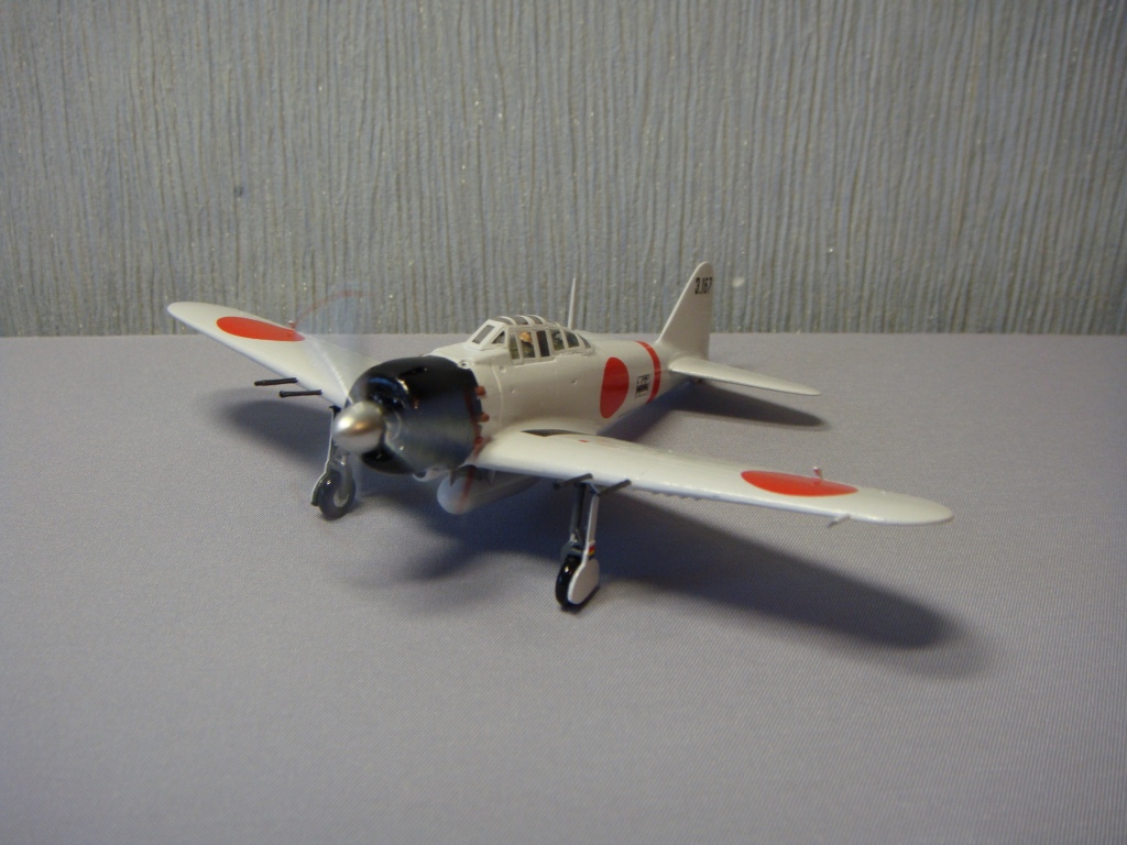 Это – единственная модель А6М5с, окрашенная в стиле А6М2. Уж очень хотелось иметь в своей коллекции самолет по мотивам фильма «Перл Харбор». Да и сама идея дизайна покраски, когда весь корпус самолета представляет собой большой флаг, мне очень по душе. А поэтому это – модель самолета А6М5с, построенного уже в наши дни по старым чертежам и покрашенного в стиле А6М2 по желанию мнимого японского заказчика. Знаю, что будет много критики по поводу отсутствия копоти на белом корпусе от выхлопных патрубков. Пробовал пачкать, но без модельных пигментов и подручными материалами это оказалось неблагодарным занятием, выглядело как-то уродливо и нереалистично. Модель – отдых в сборке, учитывая высочайшее качество Academy. Красил автонитрокрасками Vika кистью. Из доработок – пилот, номерные деки в стиле нумерации этих самолетов.