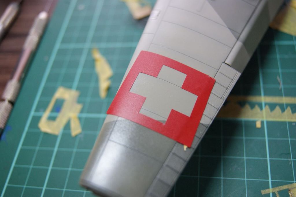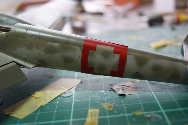 Пасть и кресты были надуты из аэрографа с помощью масок, свастика, как оказалось, позднее получилась меньше по размеру, чем надо.