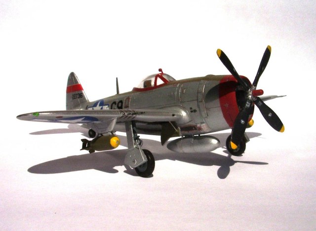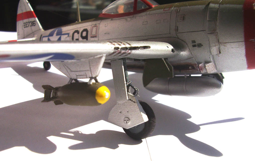 Был полностью изготовлен интерьер кабины, панель приборов, сидение, ремни и прицел. Вырезал ниши шасси, вставил перегородки, цилиндр гидравлического подъема шасси и створок. Перерезал расшивку. Доработал механизм для подвешивания бомб. Даже попытался нарезать протектор на колёсах, получилось, но не очень. Доработал двигатель. Заменил пулемёты на иглы от шприца. Высверлил отверстие фотопулемёта. Изготовил АНО и кодовые огни. Сделал открытыми жалюзи системы охлаждения двигателя. Высверлил и доработал выходные отверстия воздуха, охлаждающего маслорадиатор. Открыл створки воздушного канала. Подвесил недостающий бак.