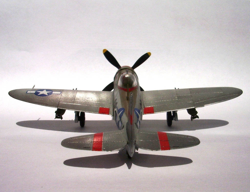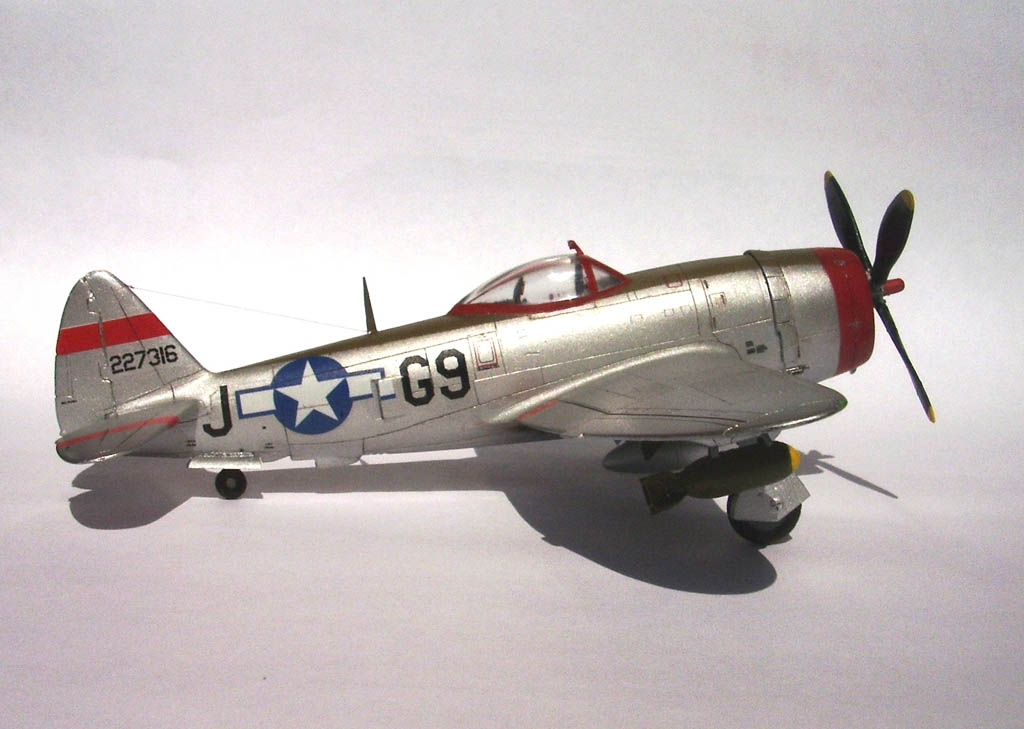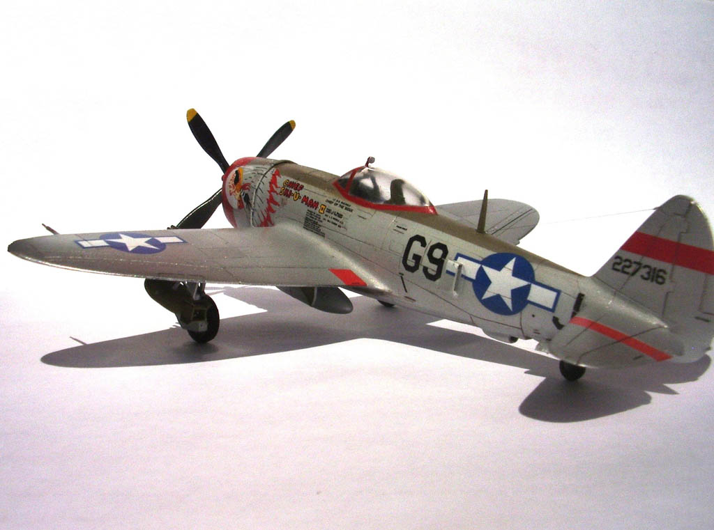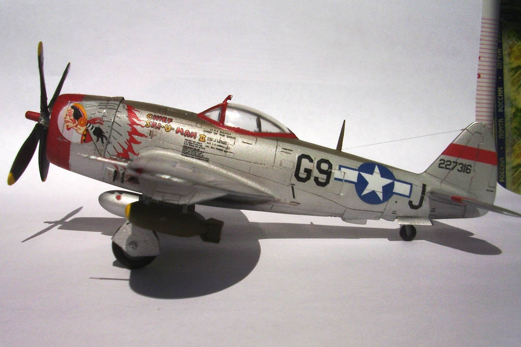 Учитывая исходную "дровянистость" ярославских пресс-форм + объем доработок, модель вызывает уважение. За одни накрашенные ОЗ и доводку фонаря - "мое почтение"! Хорошо смотрится расшивка, проработка шасси, но за цвет ниш будут "сечь" (должны быть желтыми). Однако фотки "макро" все достоинства сводят на нет (вылазят зерно серебрянки, границы цветов и на фюзеле краснота от "ковриков" на крыльях) Зато декаль легла отлично!