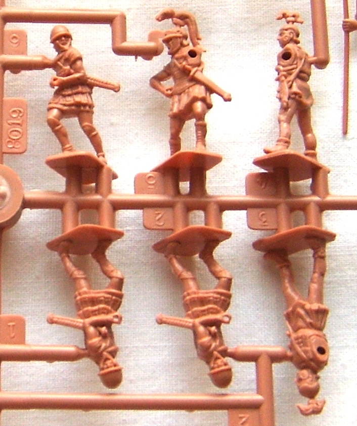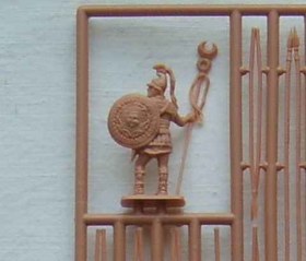 Однако не обошлось и без некоторых недостатков. В местах соединения фигурок с литниками, технологами осталены слишком большие допуски. Поэтому литниковые трубки тяжело обрезать и часть из них скрадывает деталировку. А это ни есть хорошо... Еще обнаружил такой момент, у воина украсившего свой шлем перьями, на 3-х фигурках из 6 (на каждом литнике брак у одной фигурки) у основания ноги образовался весьма неприятный наплыв пирамидальной формы шириной в 1-1,5 мм. Как его убирать, ума не приложу, скорее всего придется маскировать растительностью...