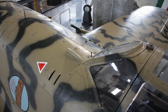 Самолёты размещены на третьем этаже ангара, очень неудобно. Обзору и фотографированию сильно мешают железобетонные столбы. Тем более, что огорожены зоны, за которые заходить запрещено. А отснять ниши шасси и прочую мелочёвку очень хотелось. Выручили такие же туристы (из Германии), как и я. У них был ноутбук с модемом. Поэтому, попросив их загрузить Internet, я показал смотрителю музея наш сайт и свои модели итальянских самолётов. Также помогло, что в рейтинге сайта я занимал лидирующее, первое место. Музейный работник посмотрел на в е это, и не только разрешил полазить на «карачках» под самолётами, но даже сам предложил сфотографировать меня на их фоне, что и видно на последней фотографии.