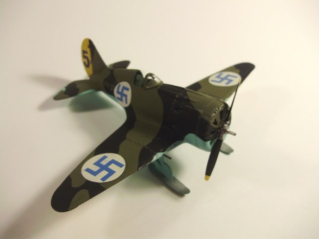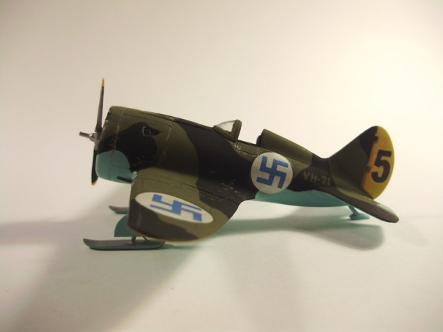Этот "Ишачок" делался давно, в середине 90-х. Захотелось чего- то необычного, вот и сотворил лыжного фина. Геометрия модели не правилась, козырёк фонаря от "шмеровского" Як-3, декаль от Траверса (на Лейсандер). Окраска кистью. Верх - Хамброл, низ - Ревелл.