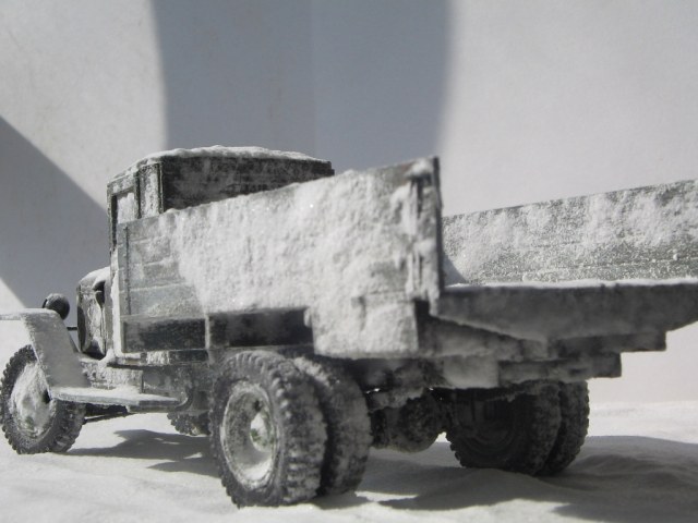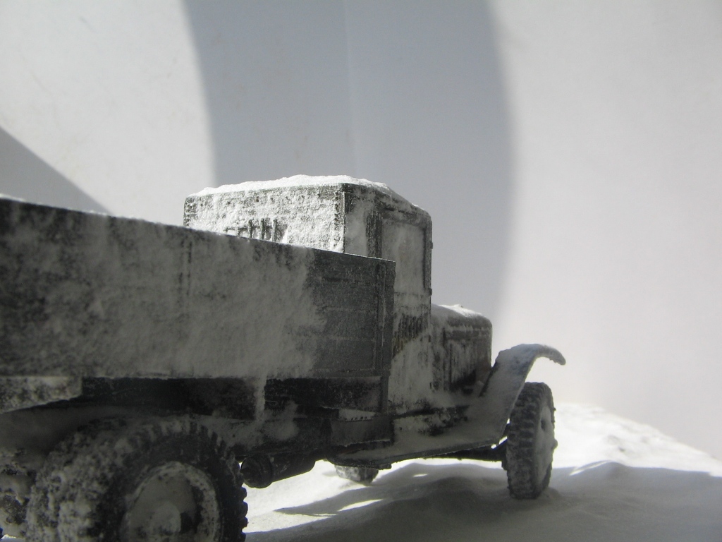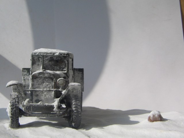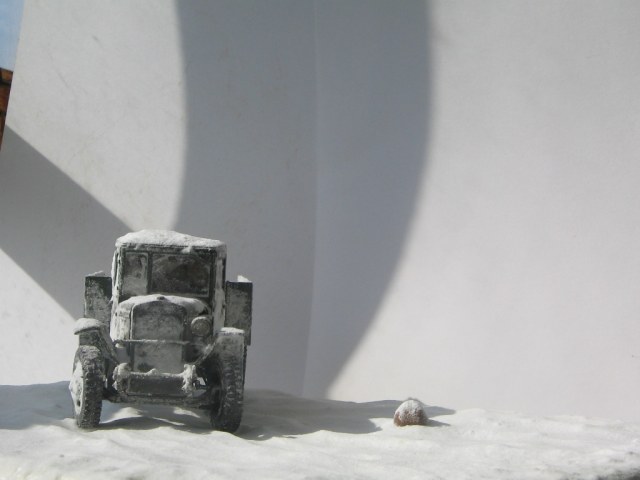 Именно. Глазу не за что зацепиться, все сливается. Нет изюминки в этой работе, фишки так сказать. Может конечно оно так и было в жизни (на Дороге жизни или на Колыме), но не все что было в реале хорошо смотрится на диораме/виньетке. Ну не на что тут смотреть. Один голимый снег. Да и вряд-ли бы на Дороге жизн бросили бы машину, отбуксировали-бы.