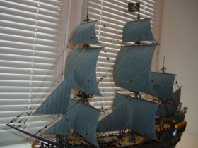 Модель здорово сделана.Умиляет черпак в шлюпке, у него ручка чёрная? Понравилось всё кроме цвета. Базальтовый серый не идёт этому кораблю и тем более мачтам. Но это фатастическо- волшебный корабль и вся критика развеяна магией.
