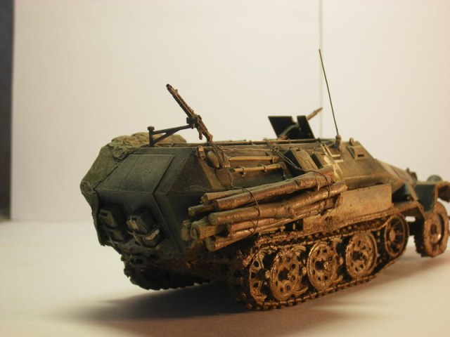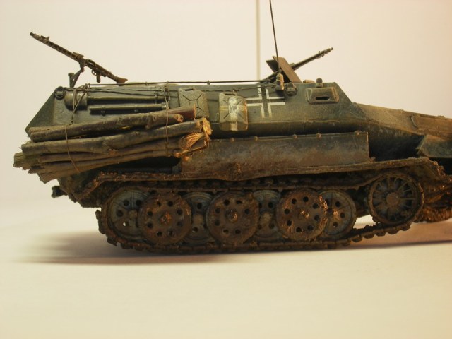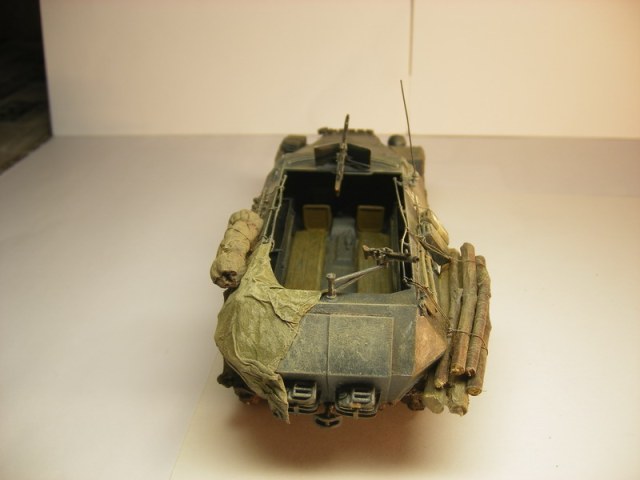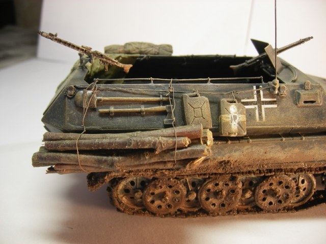 Собираеться нормально но есть проблемы со стыковкой, особенно задние двери и гусеницы тоже не подарок. Сделал крепления и антенну из проволоки, брезент из салфетки промоченой расствором ПВА, черенки сделал из зубочисток, брёвна из веток растений.