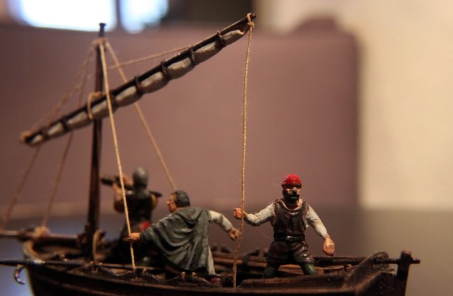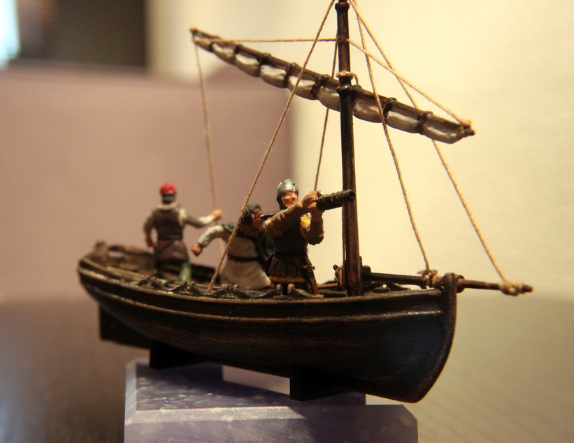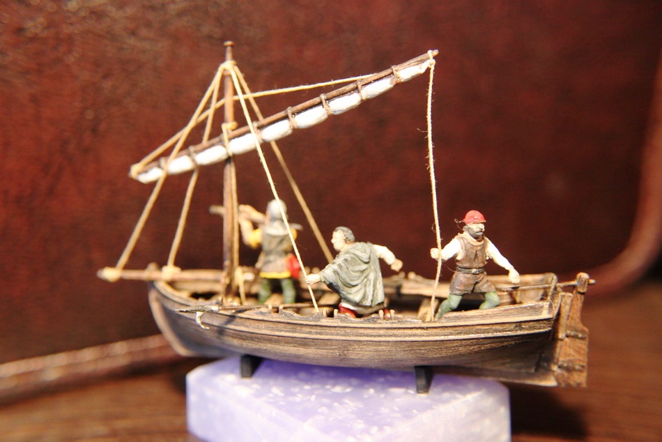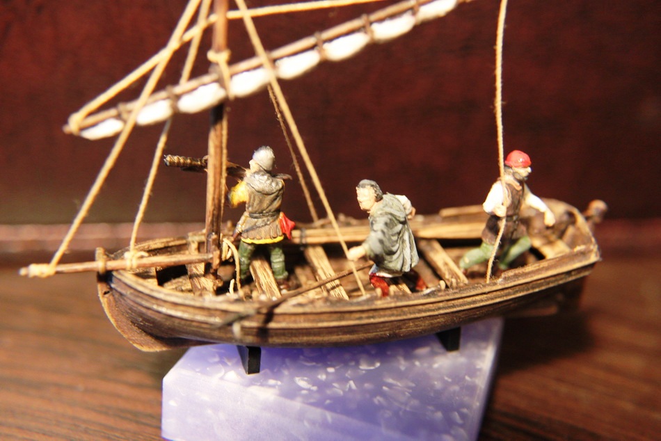 долго выбирал фигурки-изначально хотел к Ниньи приделать их..но масштаб не подходил и фигурки остались грунтованые лежать. Вот к лодке отлично подошли.